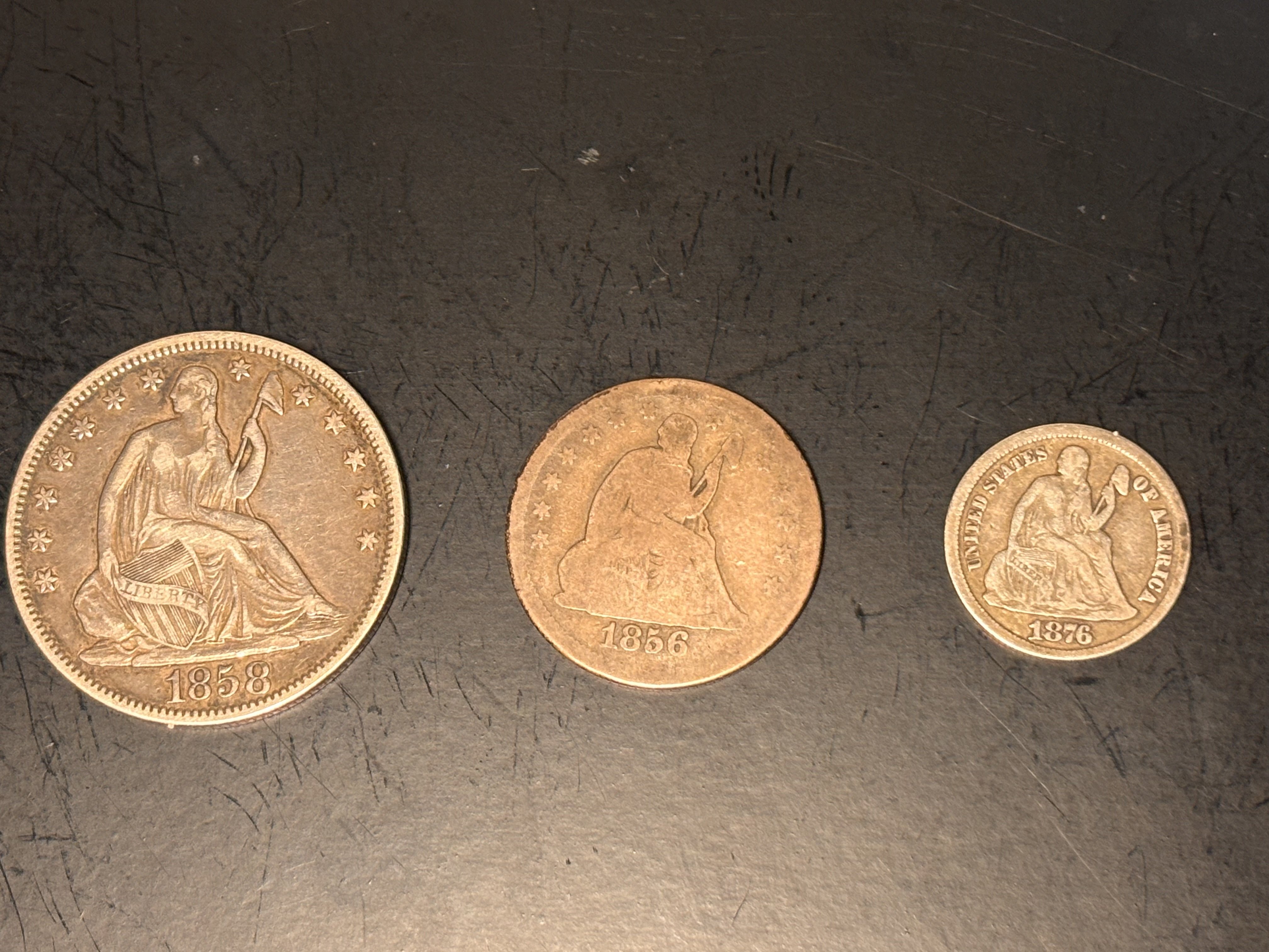 Had a few on hold at the shop and finally bought these seated libs. I especially like the half dollar, it is very original!
