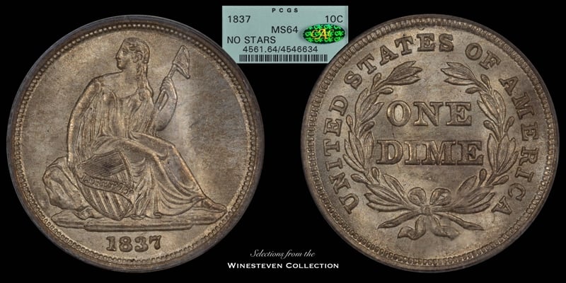 So just like yesterday, the host of this OP is inviting the previous/initial design of today’s Seated Type Dime, here’s my 1837 “No Stars”, along with my regular holding: