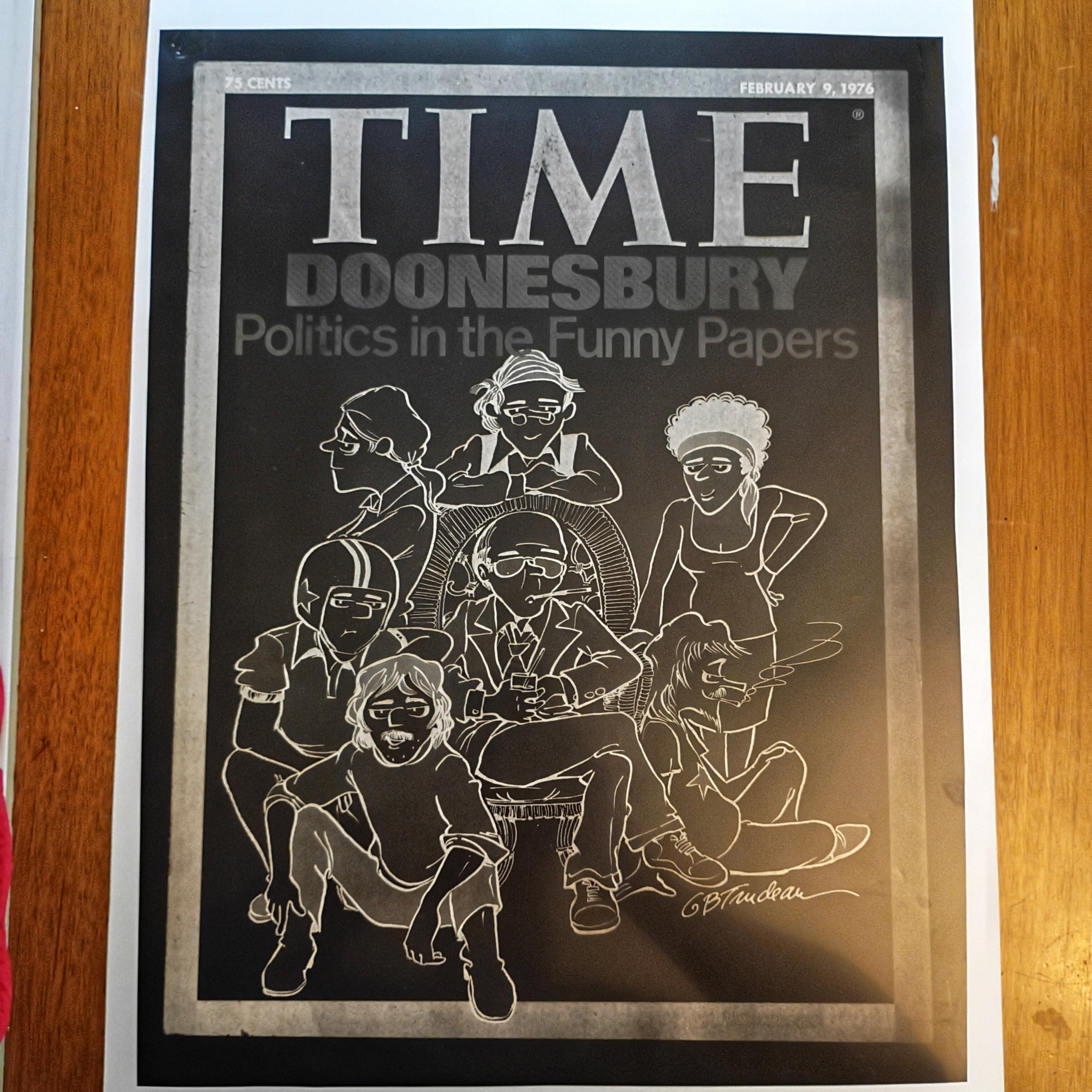 These are obviously the Doonesbury Time magazine cover but they are larger than a magazine and one item looks like film negative. Does anyone recognize what they are or have any thoughts about what they are?
