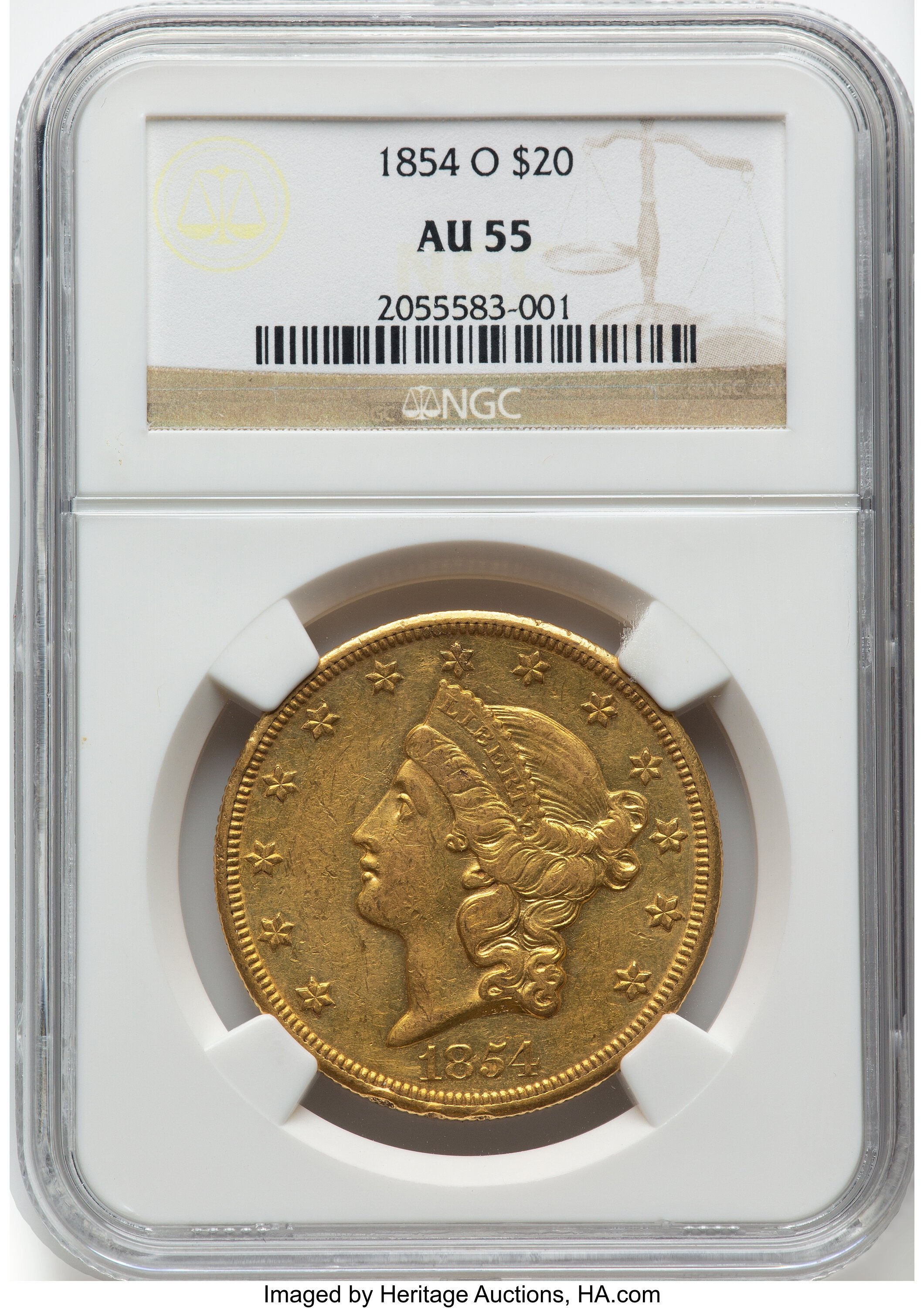 Heritage Auction today: 1854-O Liberty Head $20 Gold AU55 NGC sold for $348,000 w/bp
