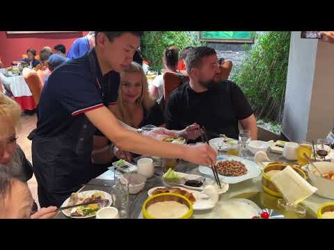 In the below video, as filmed last month in Beijing China, the city’s namesake Peking Duck, after baking and carving, is traditionally served by wrapping slices of its thin crisp skin and meat along with spring onion and cucumber in a crepe-like pancake.