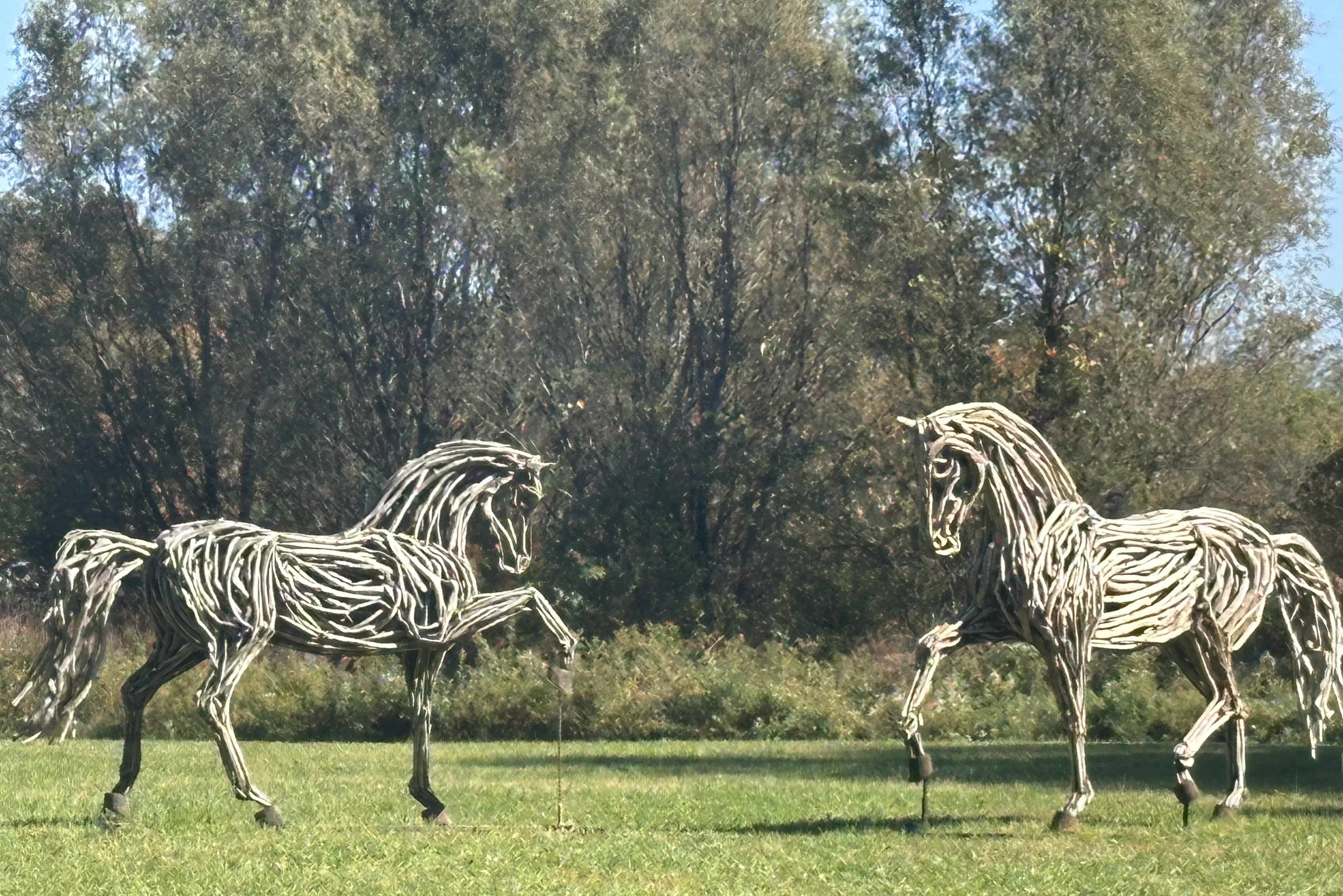 These cool pieces of art were in the apple orchard we went to this weekend.