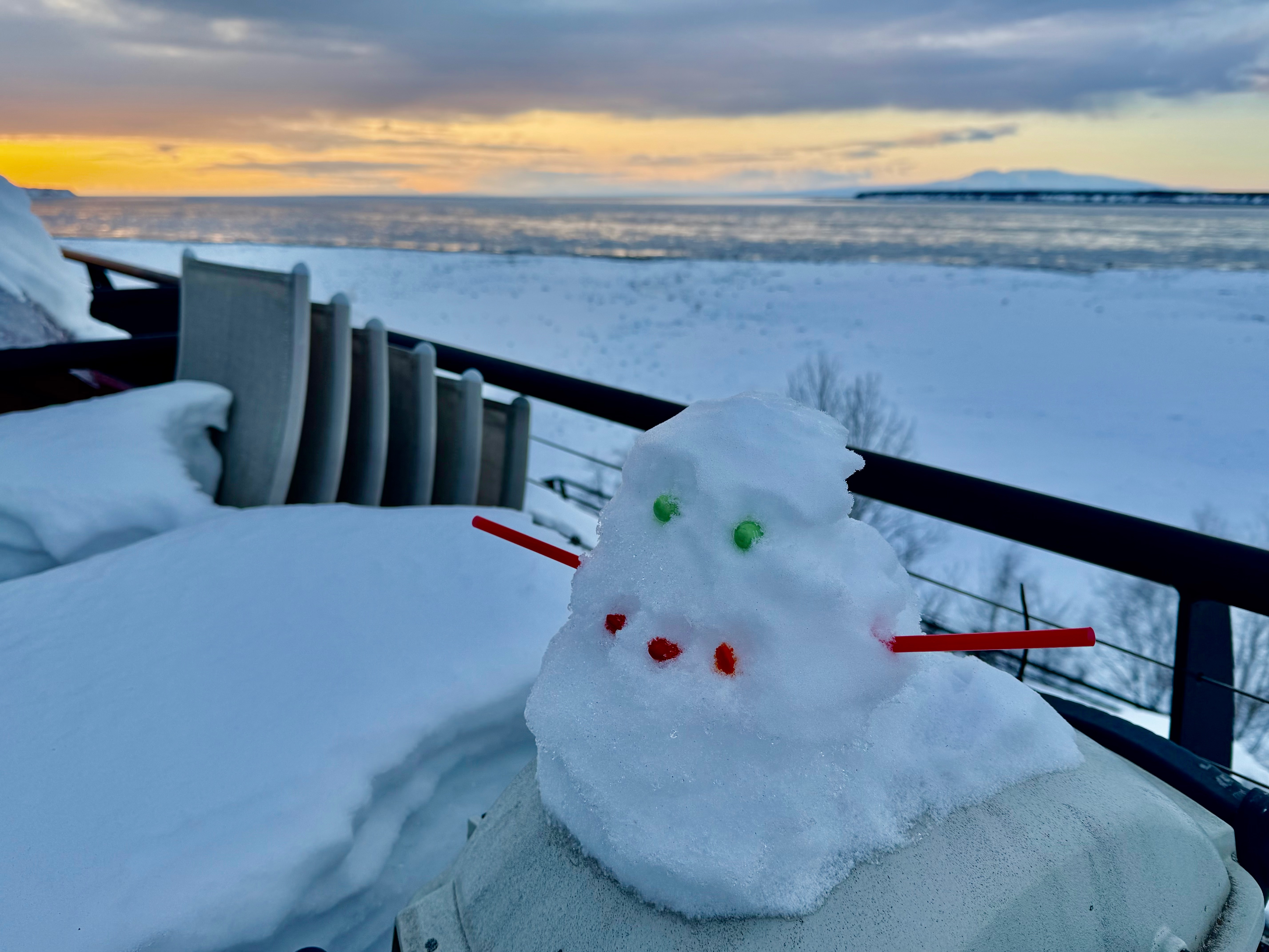 Naturally formed, it just took a straw and a few M&Ms to reveal its identity as a Jabba the Hutt snow alien.