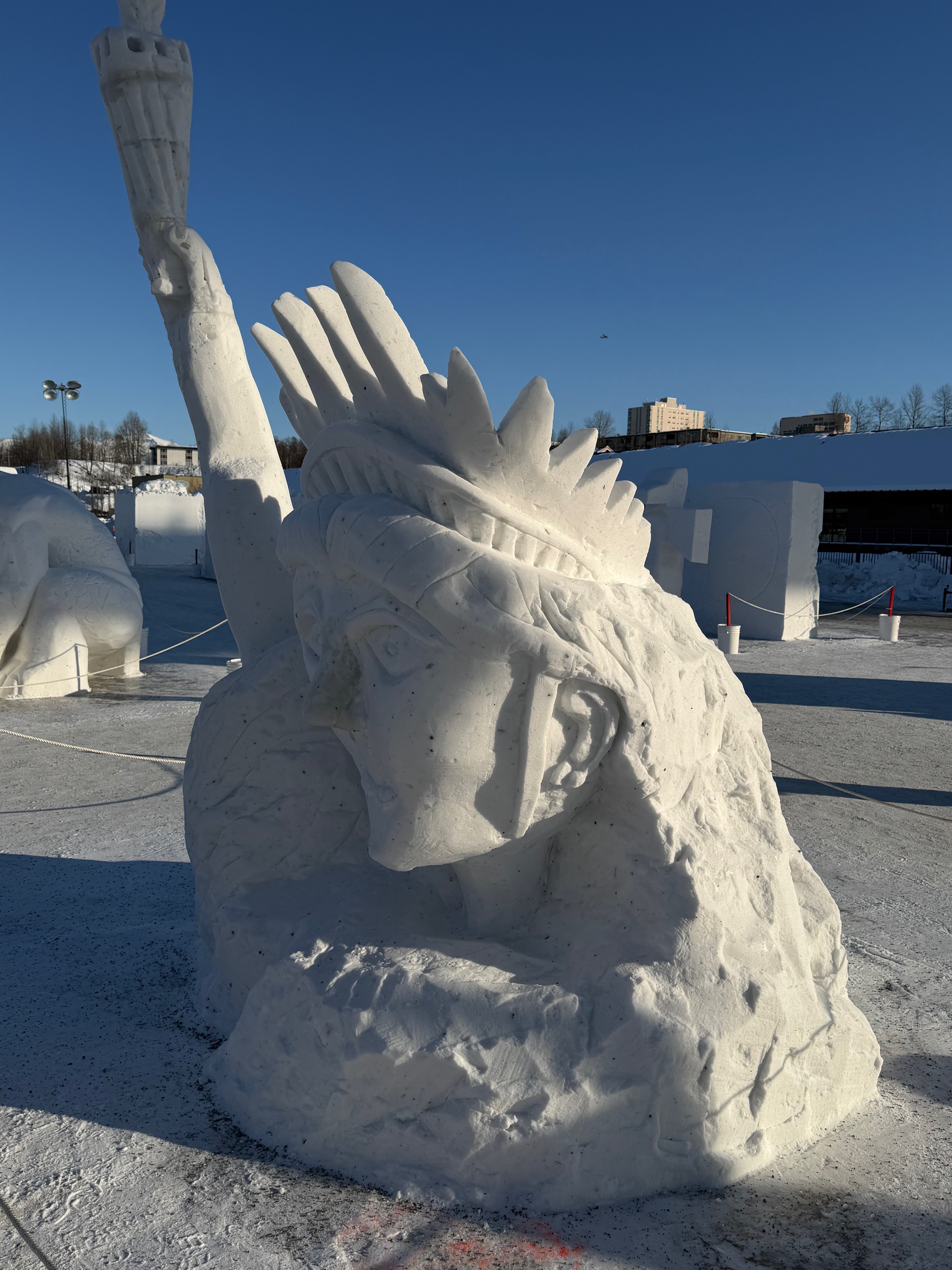 Snow Dragon & Snow Sculpted Statue of Liberty Highlight Alaska State Snow Sculpture Competition