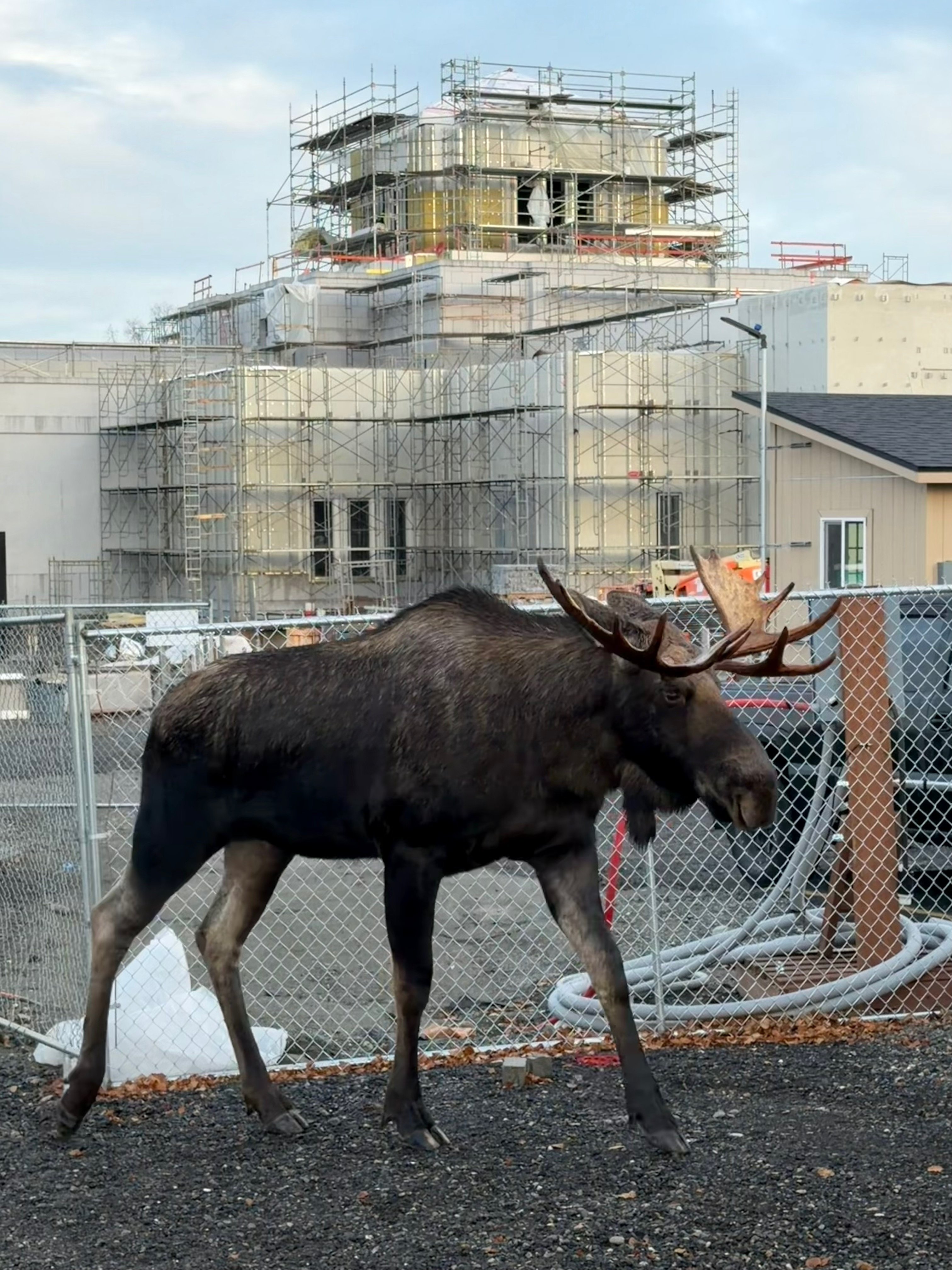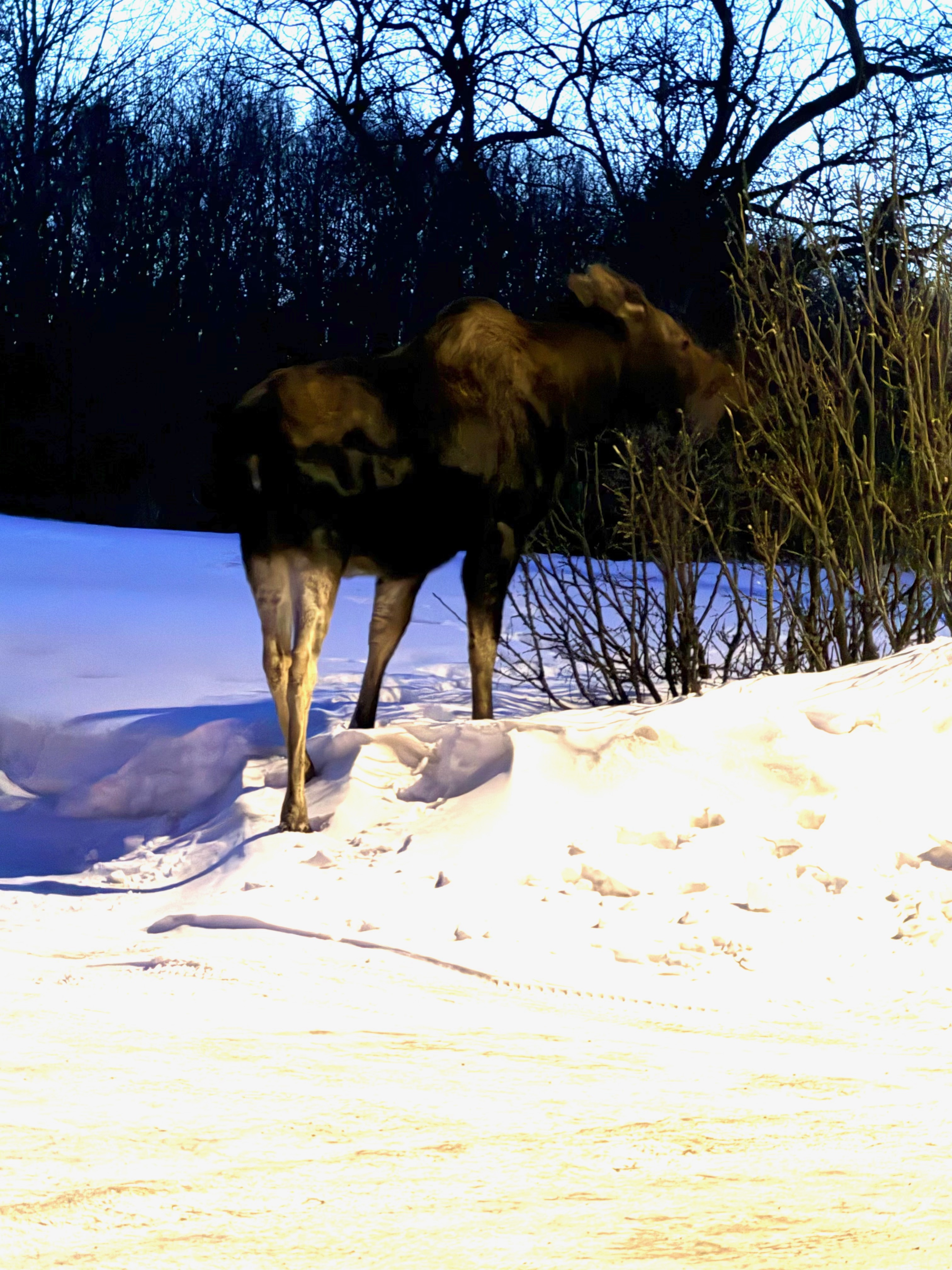 ALSO FROM TODAY, AFTER VISITING THE SNOW SCULPTURES, THERE WAS THIS SEQUEL TO THE SNOW SCULPTED MOOSE, AS LIFE IMITATED ART: