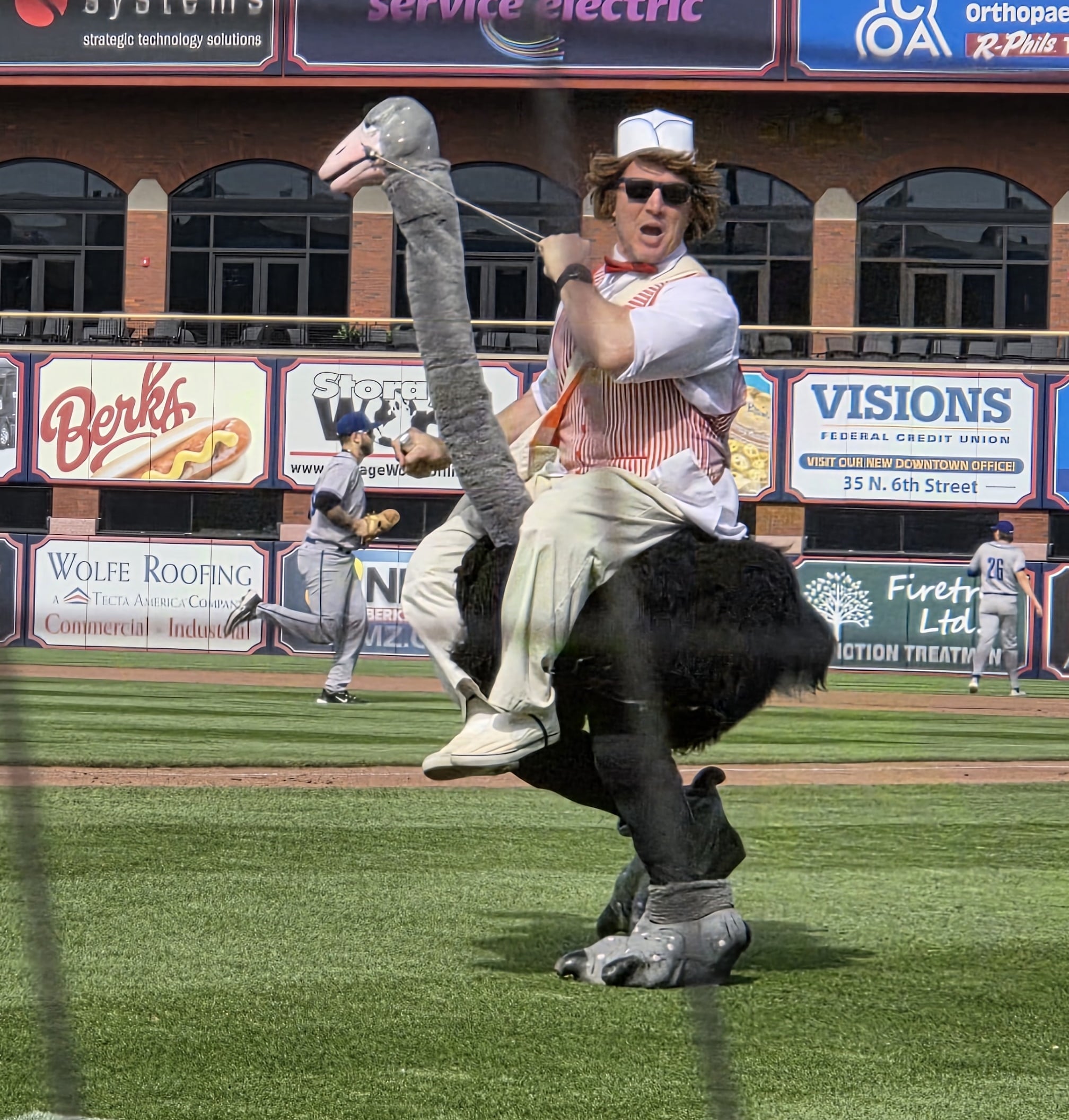 That's the Reading Phillies Crazy hoy dog vender