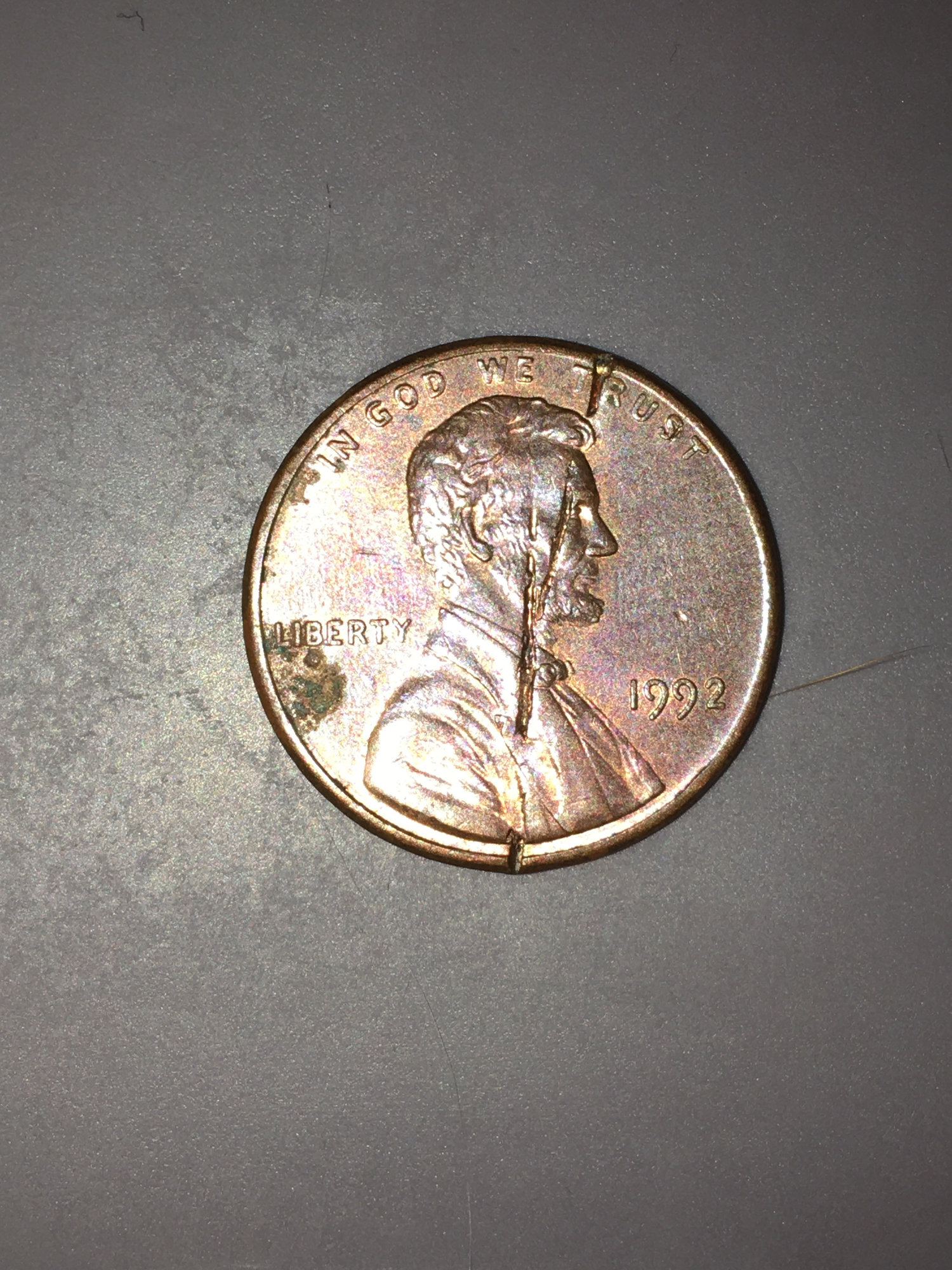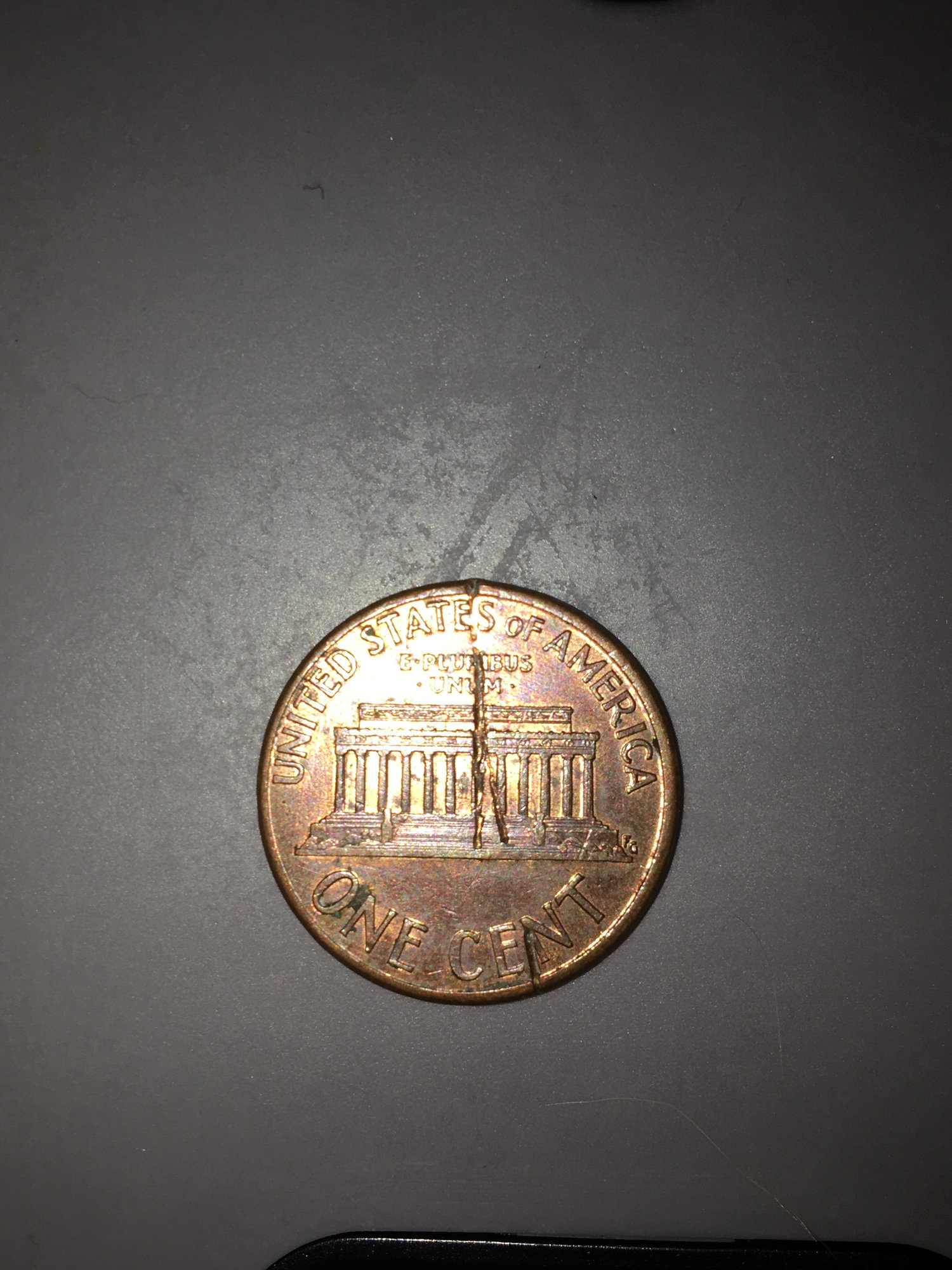I got this in change awhile ago and it puzzles me what caused it I first thought a struck through but it is the same on both sides can someone help me.