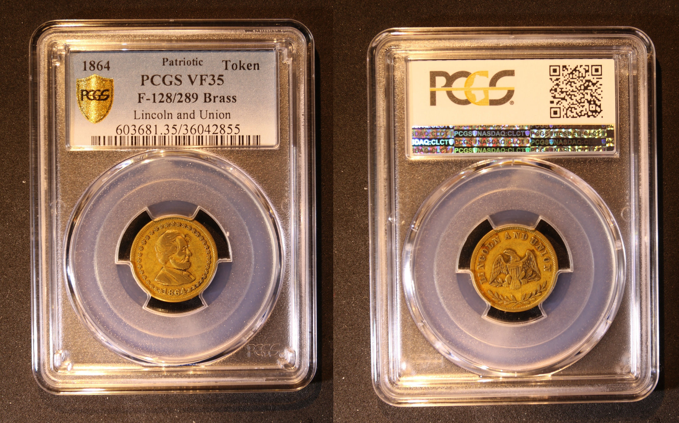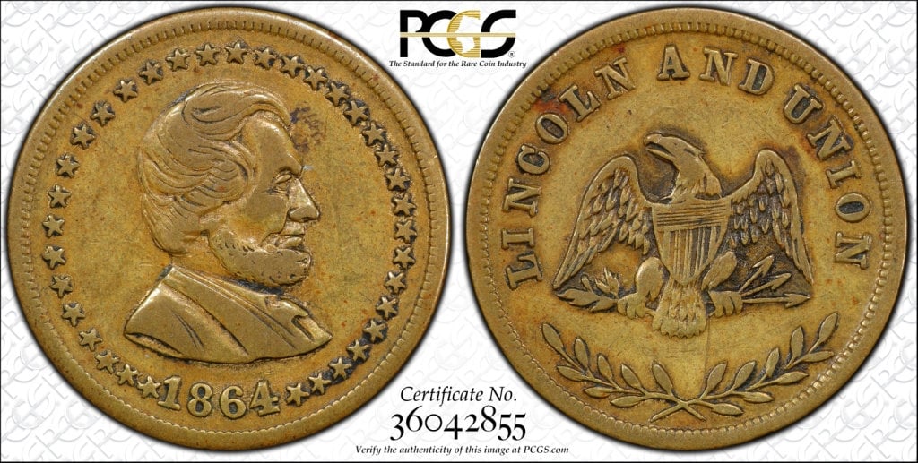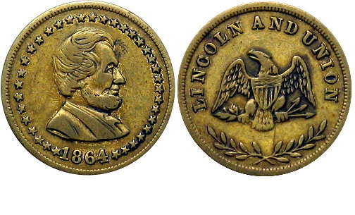 1864 Token F-128289 Brass Lincoln and Union
