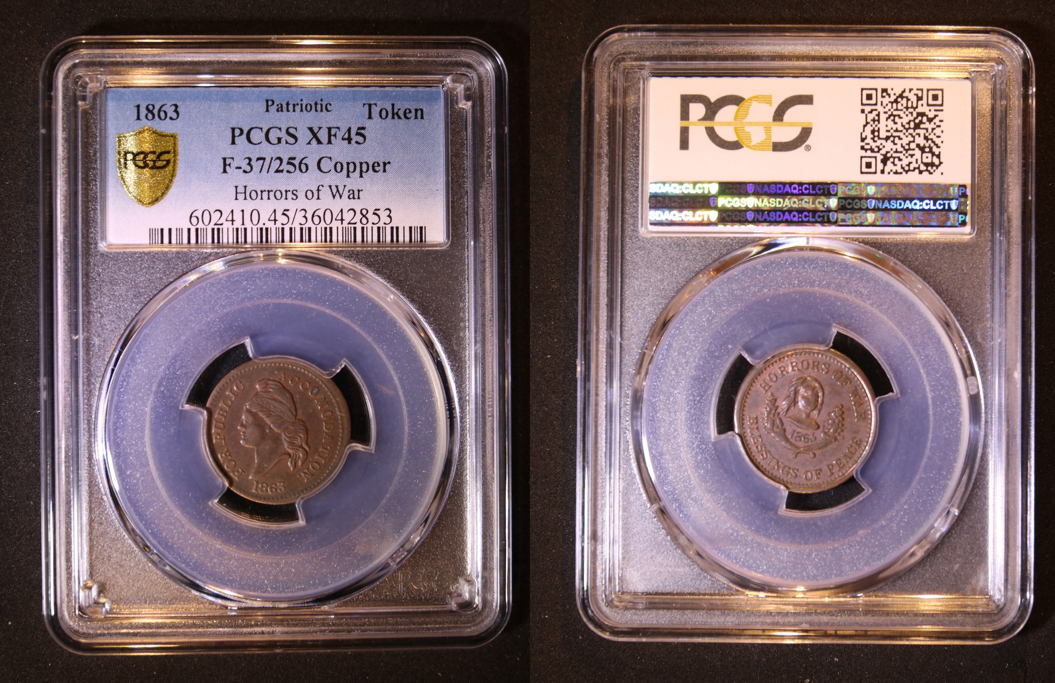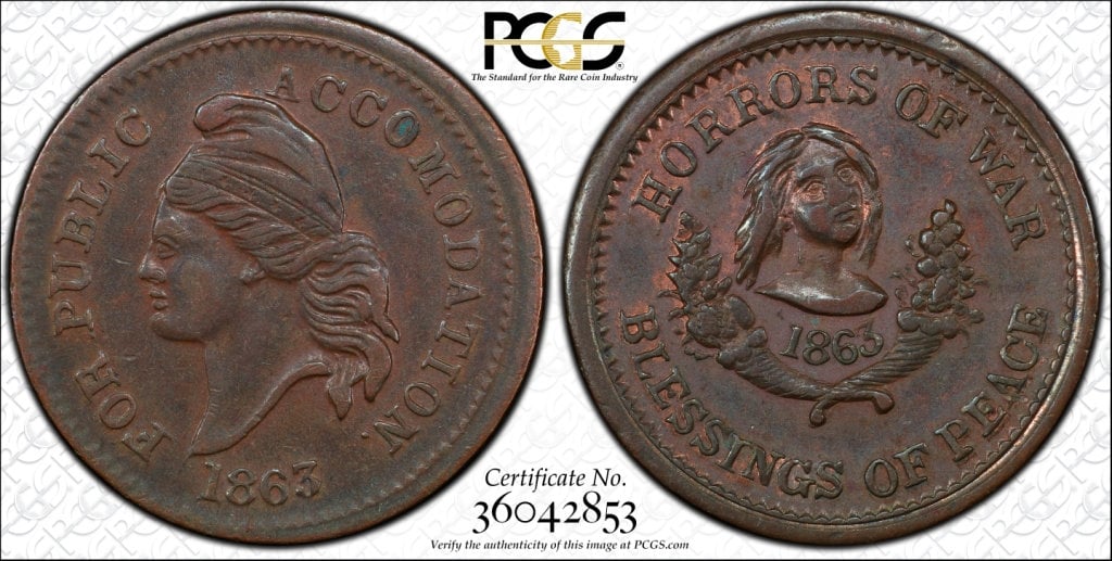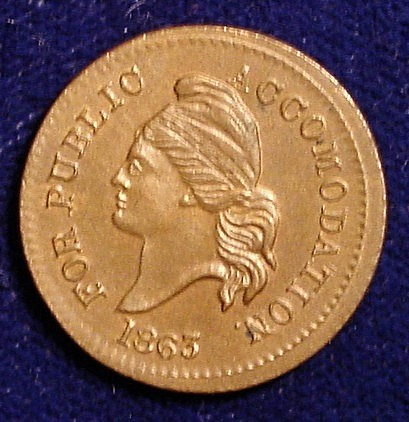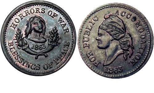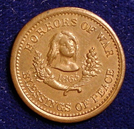Here is the same variety from my collection. This one of the pro-southern CWTs that are called "unpatriotics" or "copperheads." The "Blessing of Peace" reverse was a call for an end to the war with the South gaining its independence.