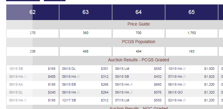 It can't go higher than 62 by grade, but it would not be out of bounds to ask a 65 price, because I think the quality of the coin would support a higher price.