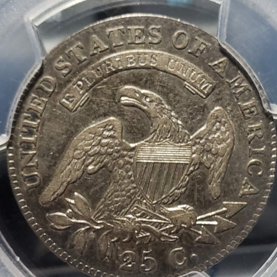 It's devices hold quite a bit of luster and the lines are not at all noticed unless you have a 7x loupe in your hand up close. Do I think it is an EF.............No........It's devices are too flat or blended for any sharpness warranting a higher grade than VF 35. I appreciate the comment should have left it in the ANACS holder. Well, I think it unsaleable in the ANACS holder.