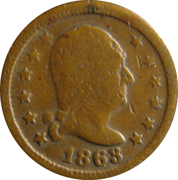 Bottom is a 1863 George Washington Wilson's Medal Civil War Token Fuld-112/396a and the H is for New York City diesinker Charles D. Horter not the Heaton Mint.