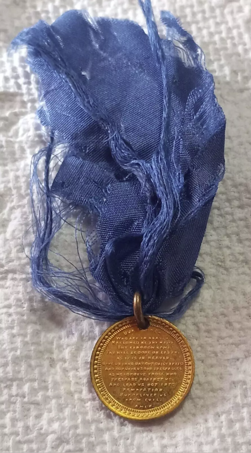 I picked this up thinking it was a Soley piece since it follows the 1879 pieces which have a very similar prayer style to the 1876 pieces, but this has a different style and even text! This one ends with "deliver us from the evil one" while the others end with "deliver us from evil. Amen".