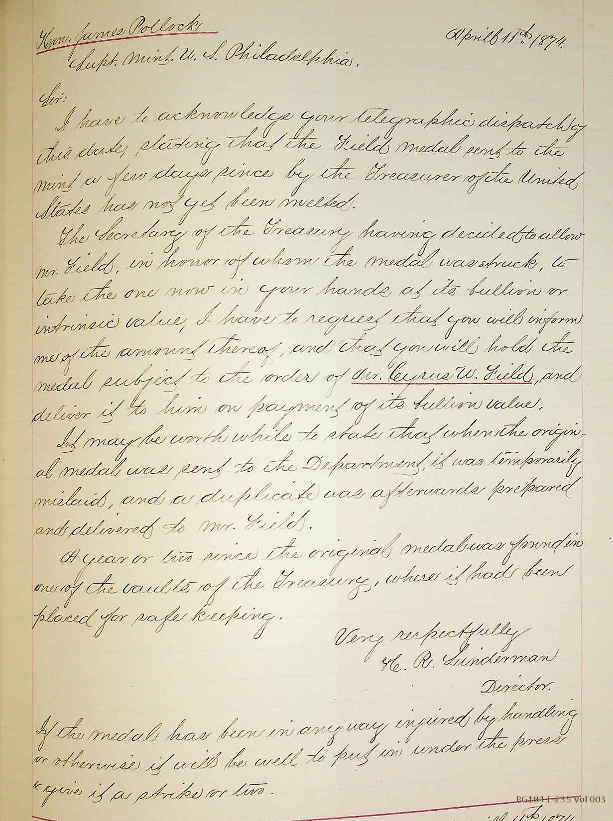 See the note at the bottom of this letter about how to repair damage to a gold medal.