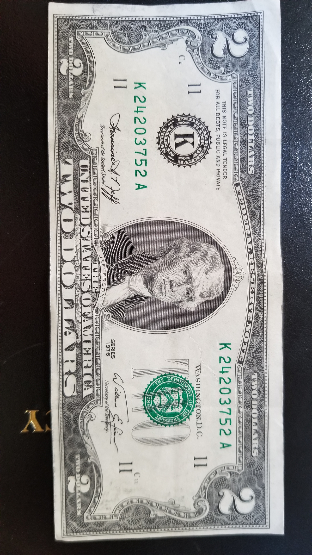 Green treasury seal is very high on this note. My first one. Value of this error? The rev of this note is unremarkable. Peace Roy