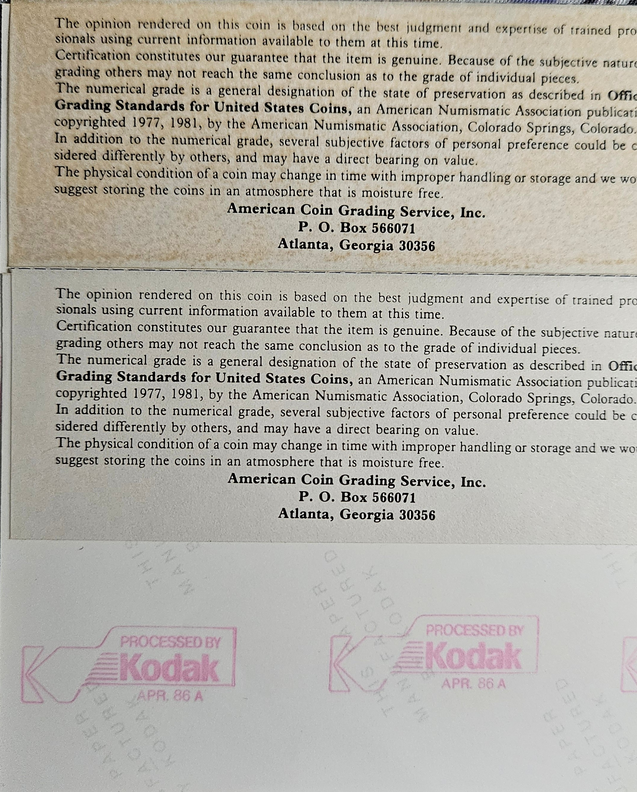 I put silver Washington quarters in album slots representing the encapsulated coins.