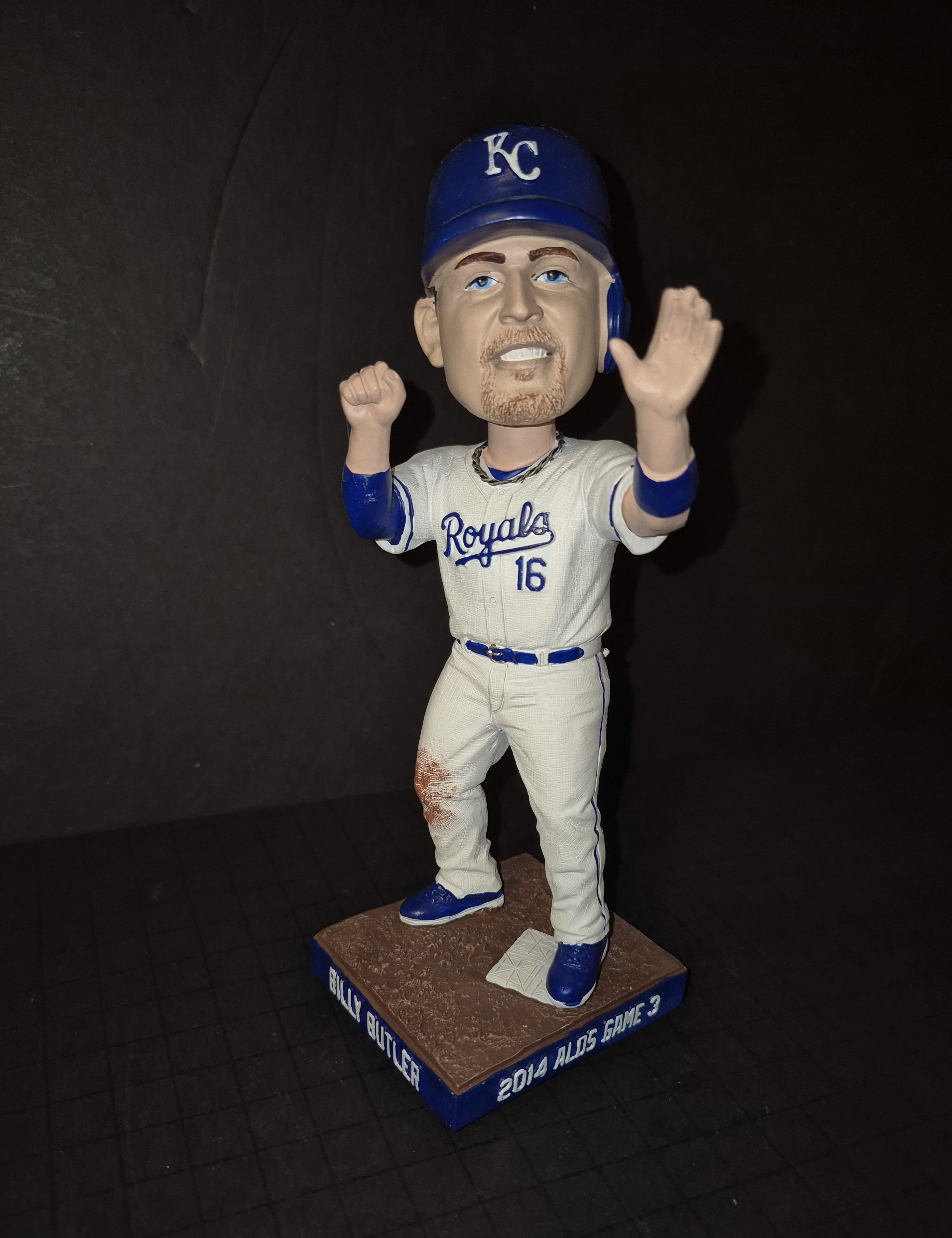 To commemorate the fact that Billy Butler will forever have more postseason stolen bases than Trouty, the Royals issued a season ticket member exclusive bobblehead of him standing on second base, attempting to rev it up. Lol