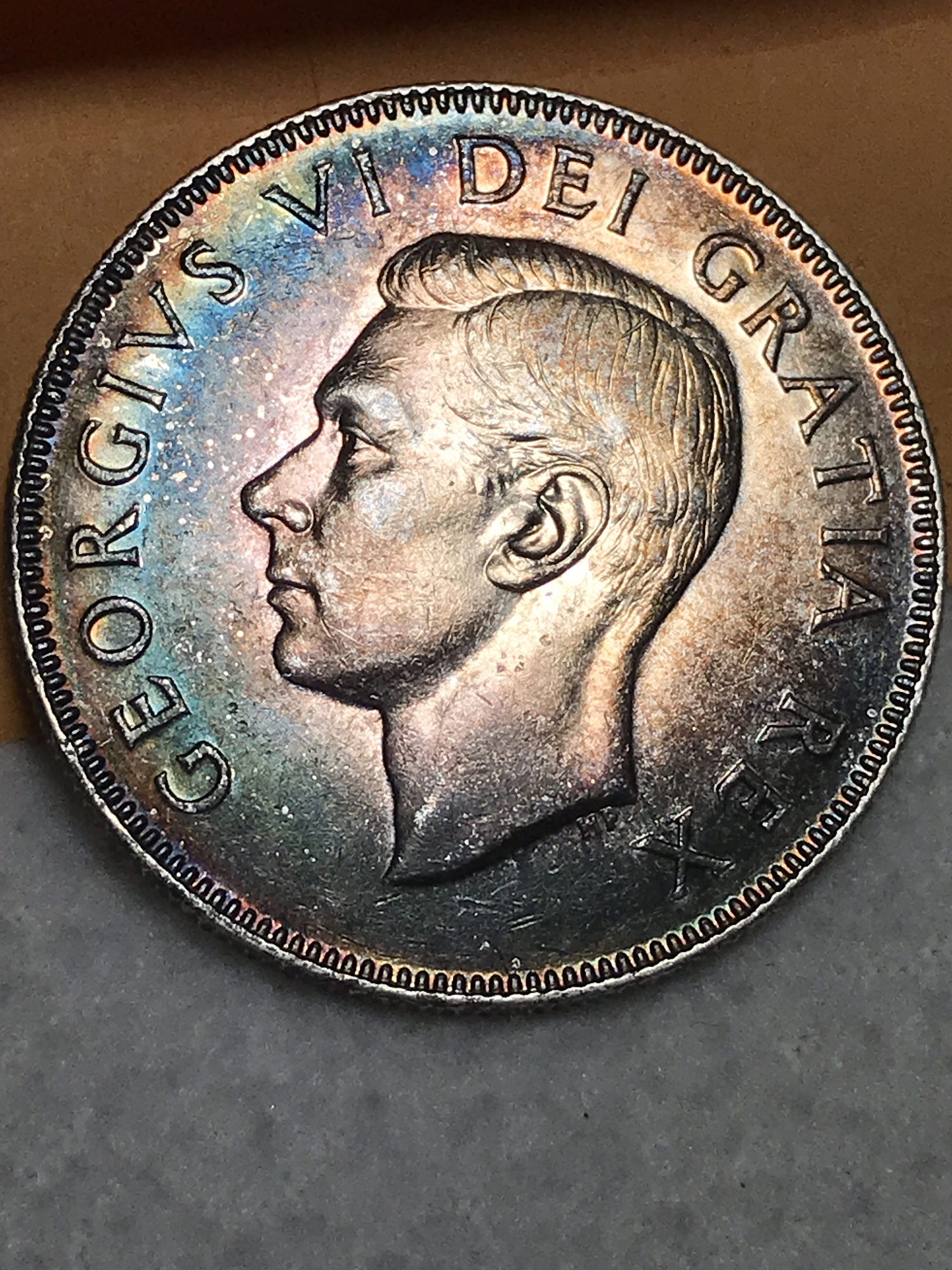 George VI 50 Cents are tough in 64 and higher. Great quality in production except handling. Most seem to have bag marks that just beg the question... Why go to all the trouble of making a superb product if at the end of the day it is going to have the look as if it were accidentally dropped down the kitchen sink while the garbage disposal was running... I have conceded that I will never come close to owning a GEM set