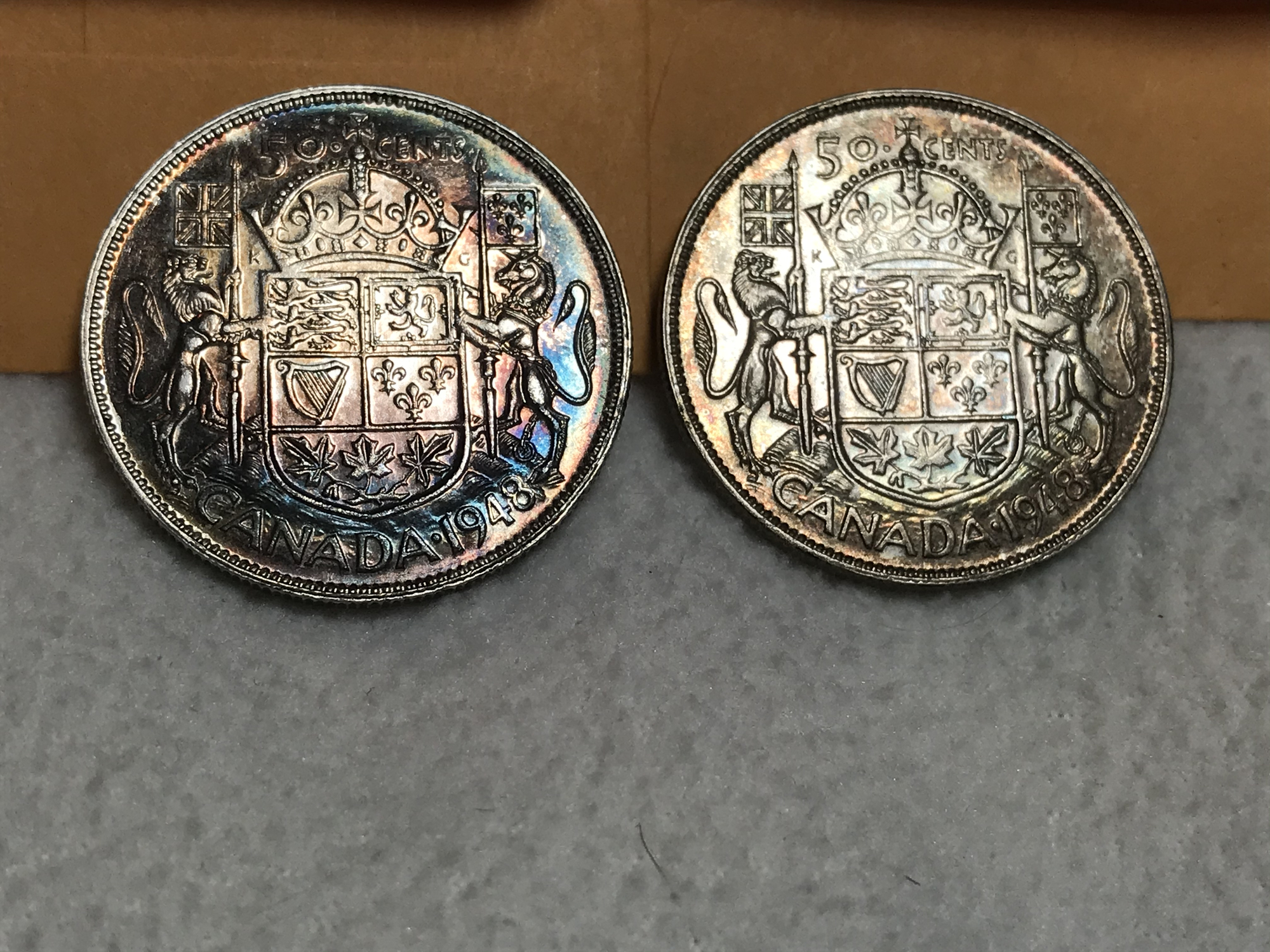 As collectors of the series know, the 1948 half dollar has the lowest mintage of the George VI series, at <38,000 coined....this also makes it the third lowest mintage of ANY regular issue Canadian half (I think).