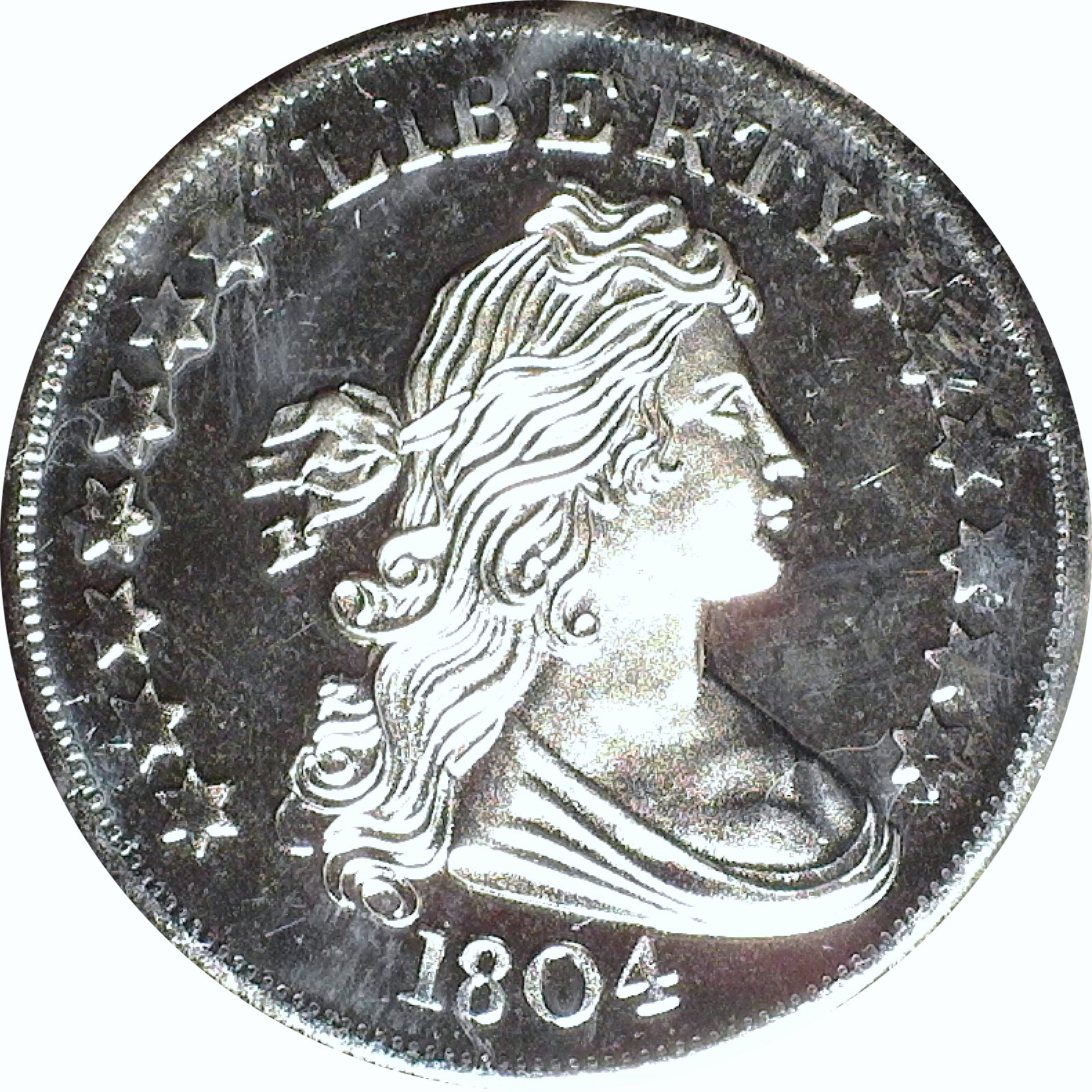 Then last week, I found an aluminum plate that was struck with the same dies. The dies used to strike this plate do not look deteriorated or "end of life" - they are pretty detailed / sharp.