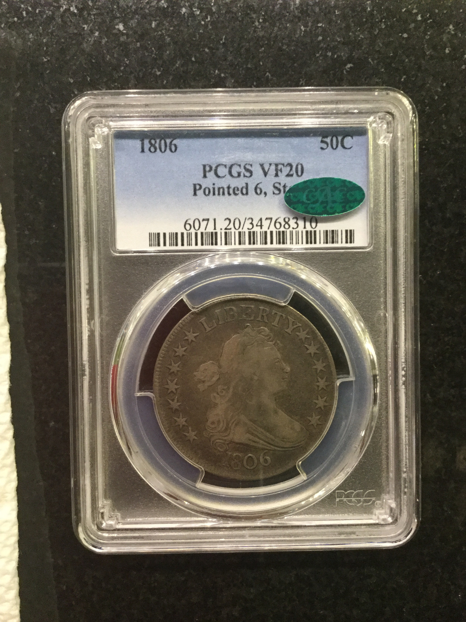 Have an 1806 half dollar in a PCGS holder graded between 2015-2017 or so, also with a green bean.