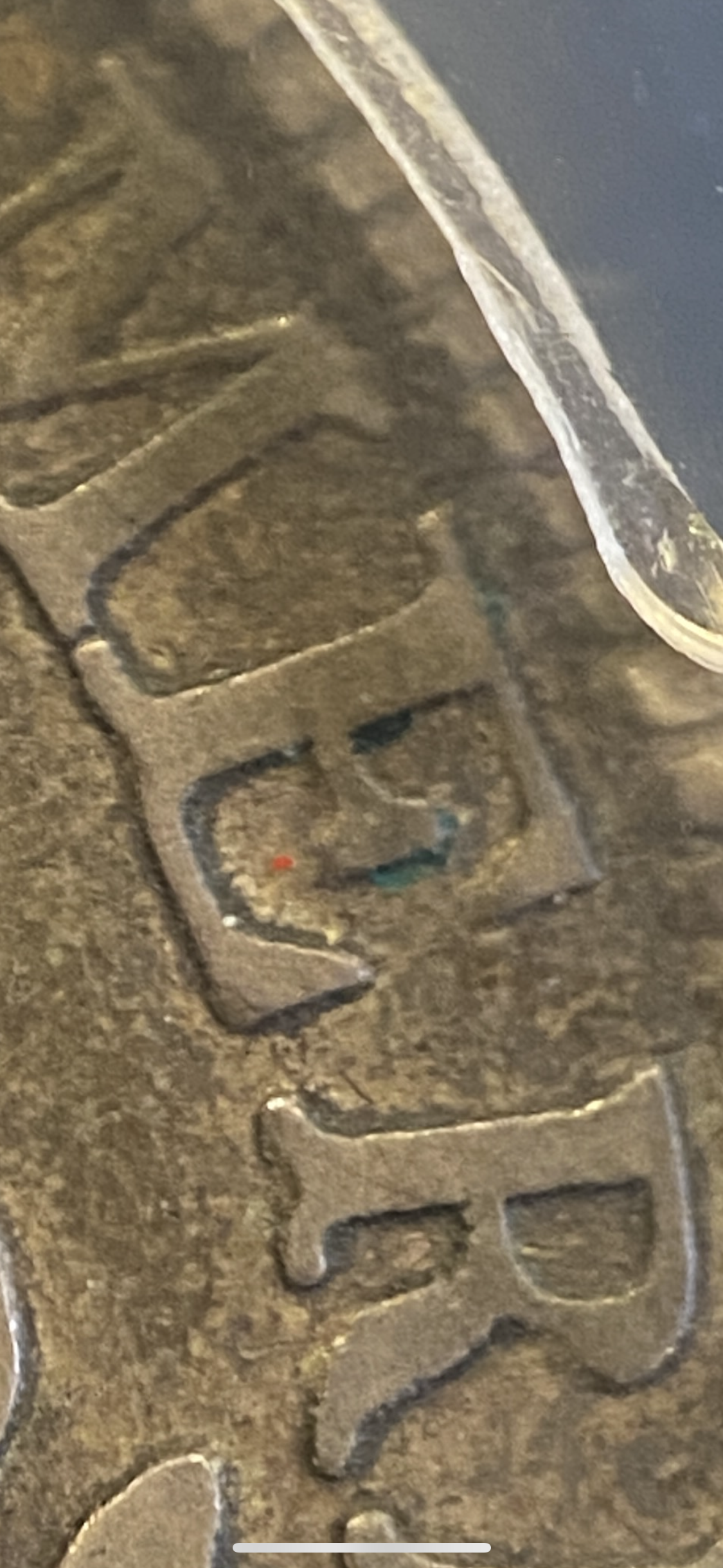 If that were my coin, those microscopic spots of corrosion (verdigris) wouldn't bother me in the least.