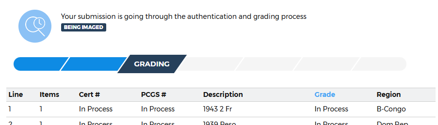 I'm patiently waiting for my submission to post results since my 1943 2 Franc hexagon is being graded...