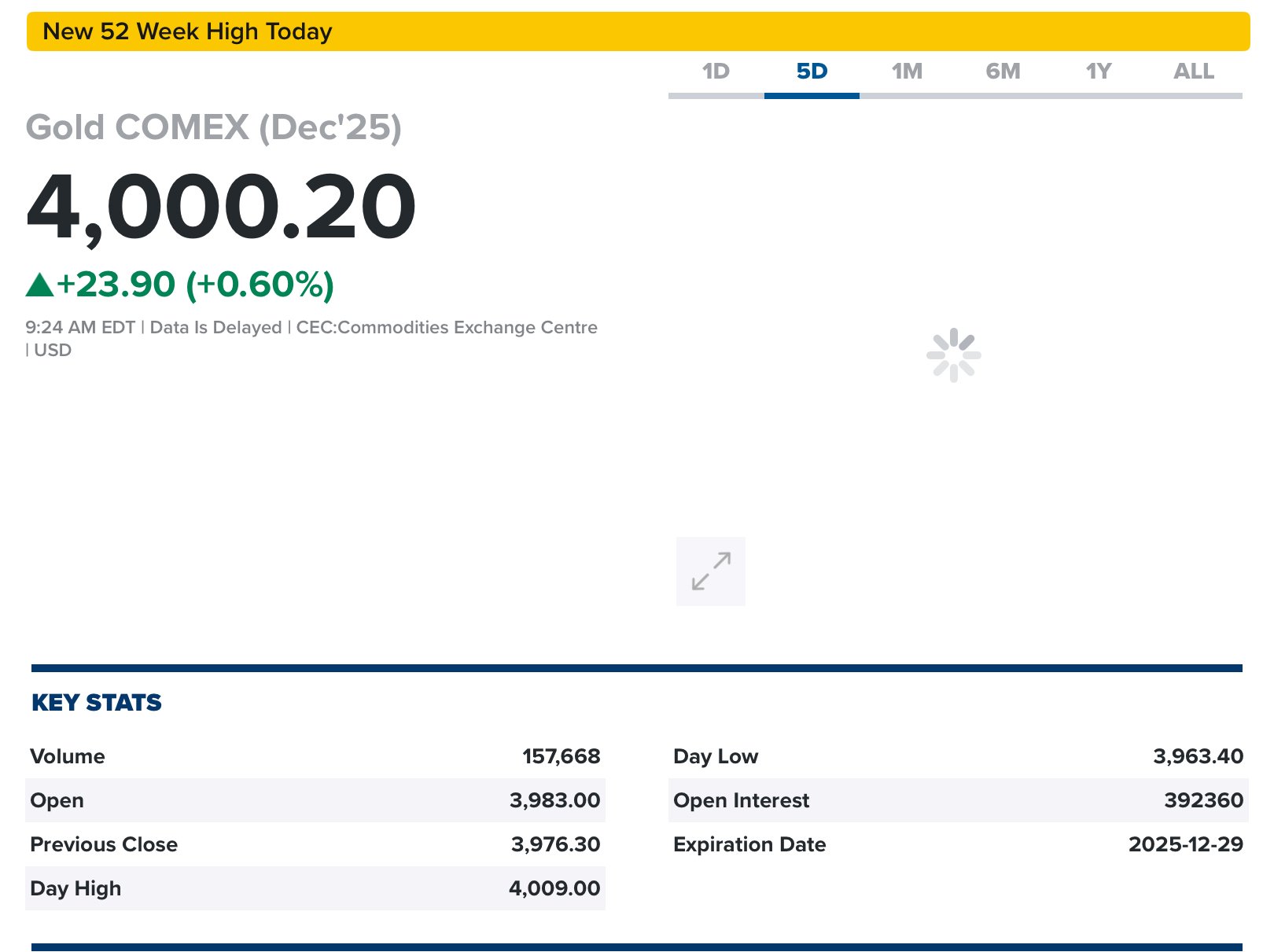 If gold can stay above 4k after tomorrow and Friday close. That will validate the 4k break out and it will see 4800 next year.