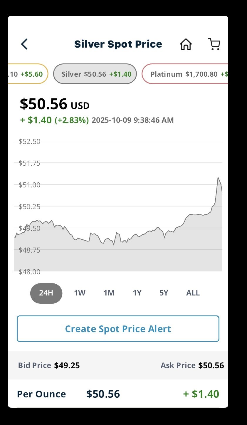 For some reason silver ounce sits at $50.08 and Silver Eagles only have $50.02 metal content.