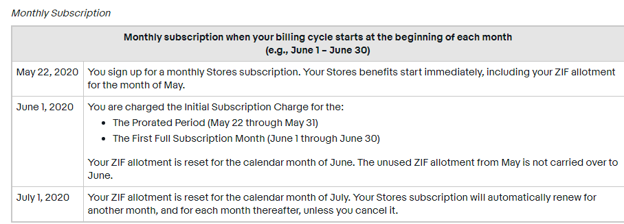 Case in point: I opened an Ebay store on April 12 and cancelled my subscription on the same day (after a big sale). My April invoice was charged the subscription fee, and my May invoice also had the subscription fee. My subscription actually ends on May 31 because of the fine print above.