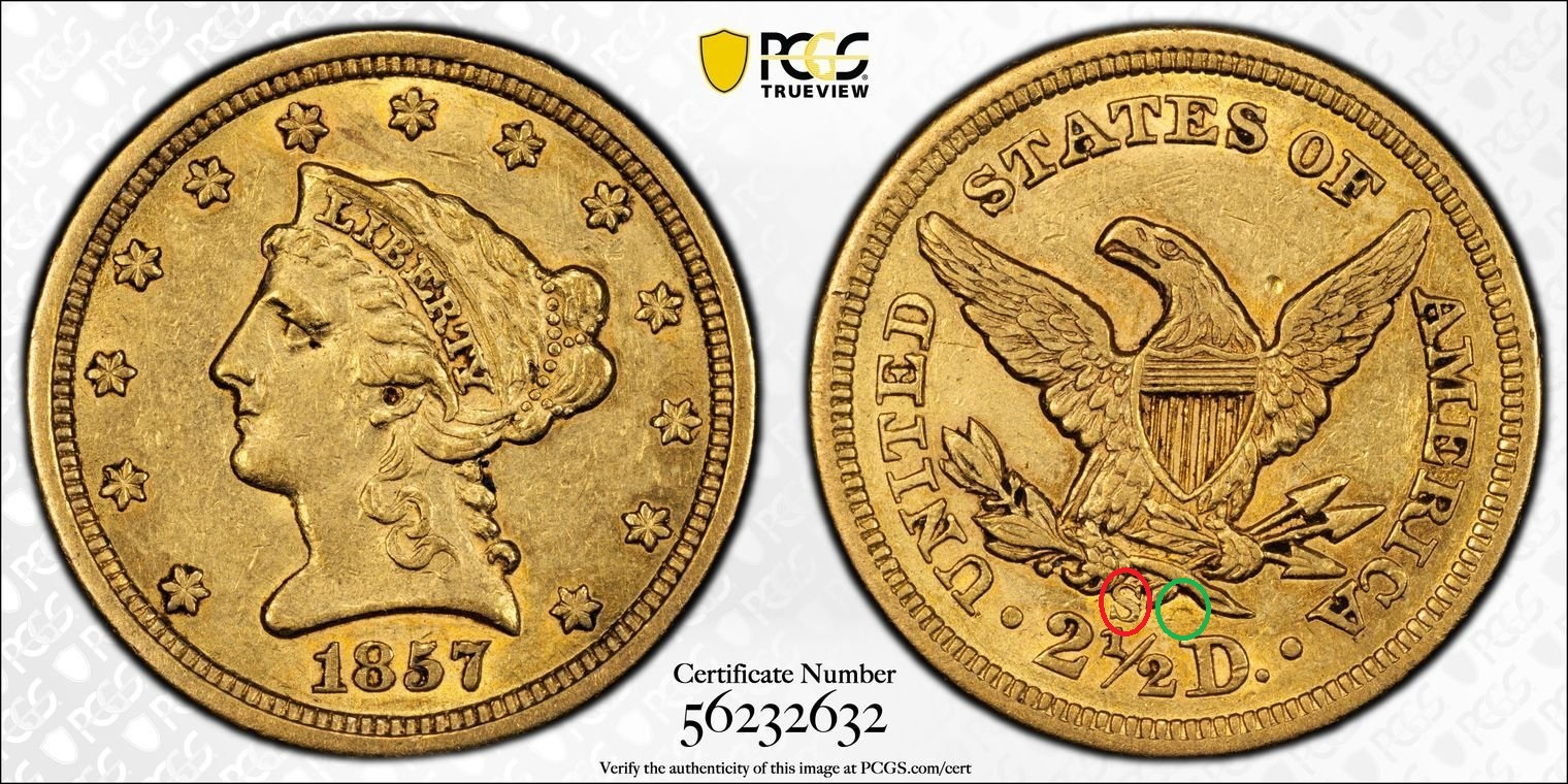 Why is the mint mark in the red circle and not in the green circle area ?