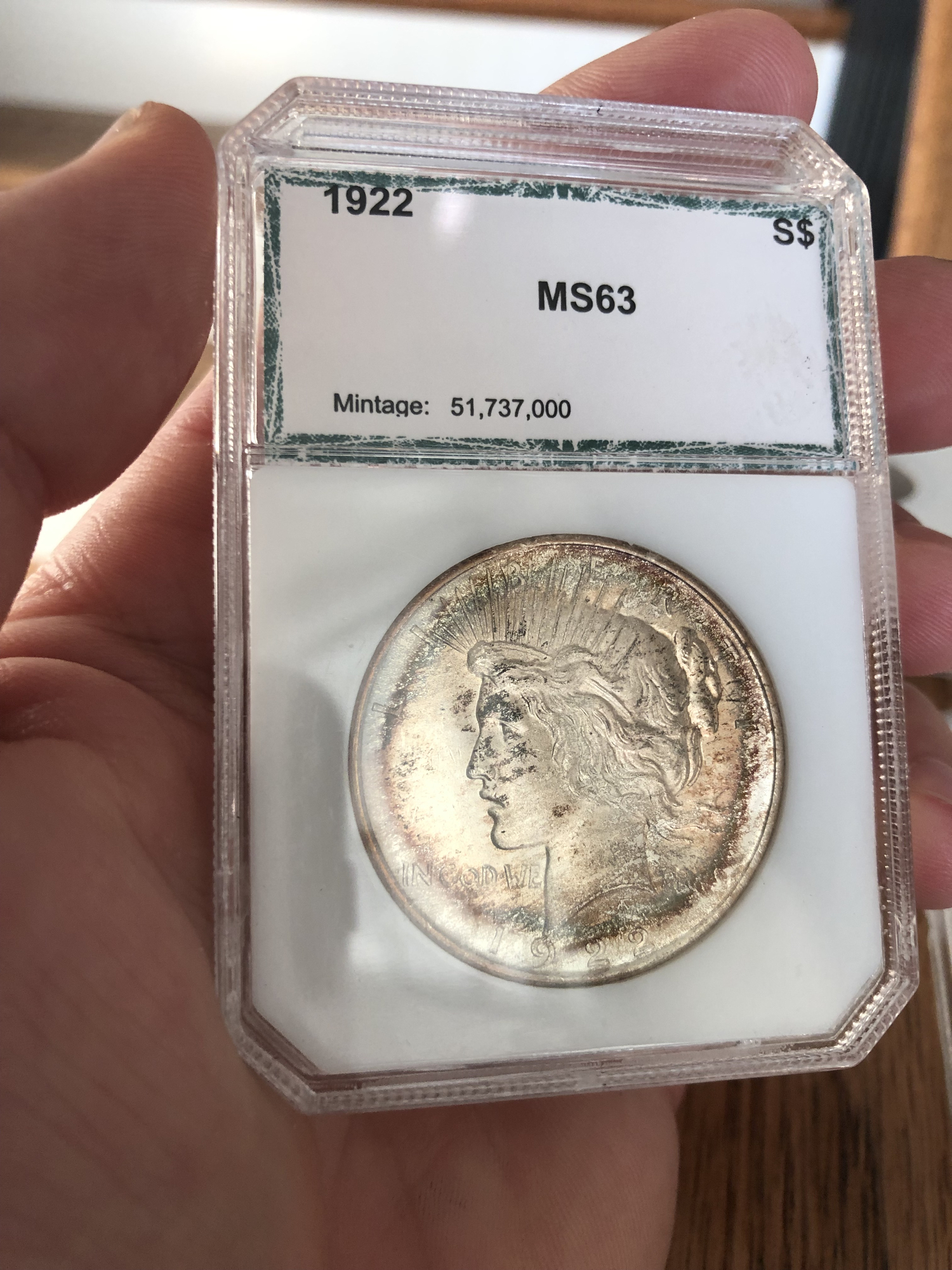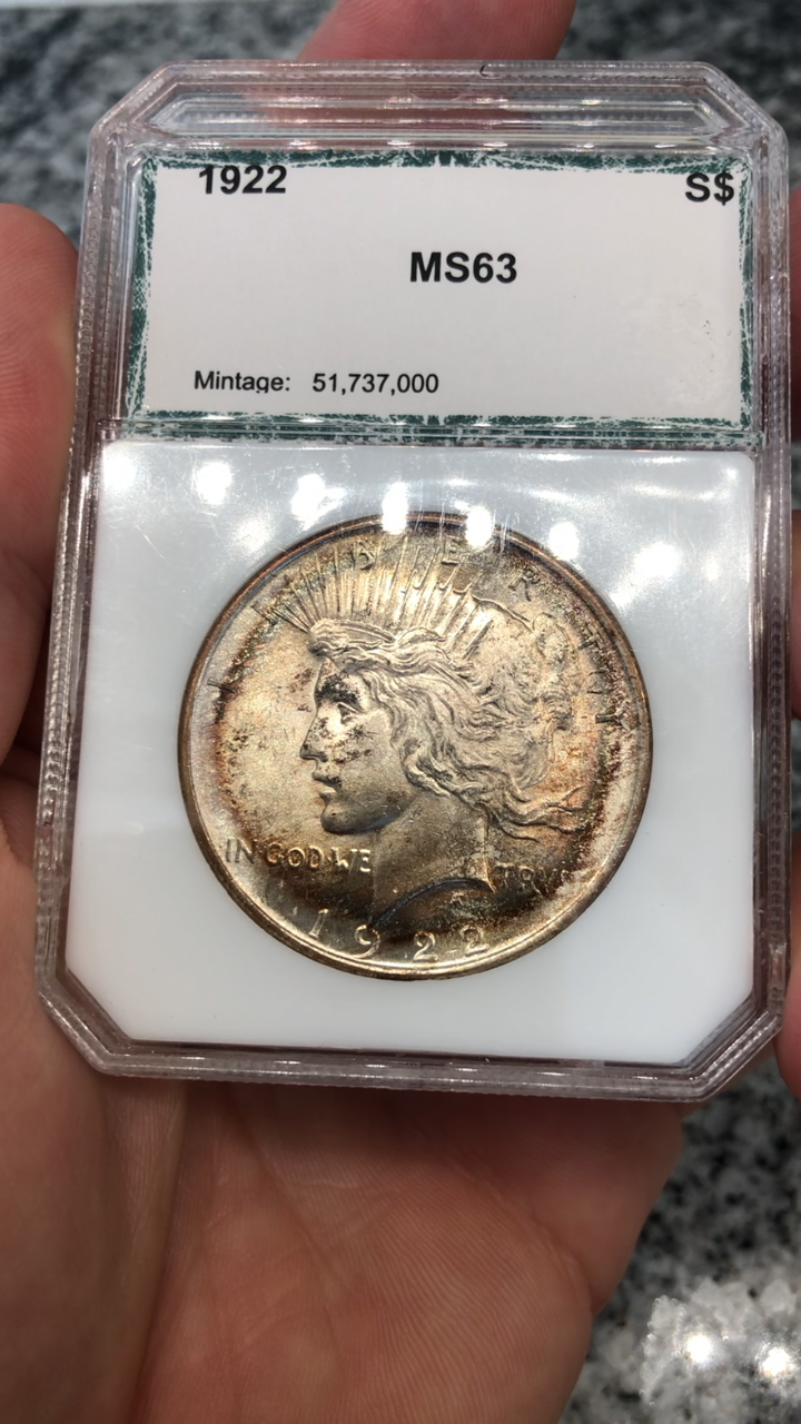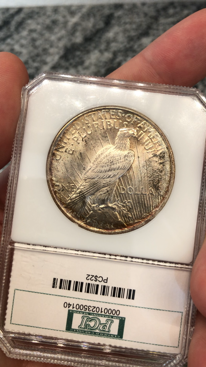 1922 PCI MS63 toned Peace dollar ~ $125 PP F&F ~ Free shipping