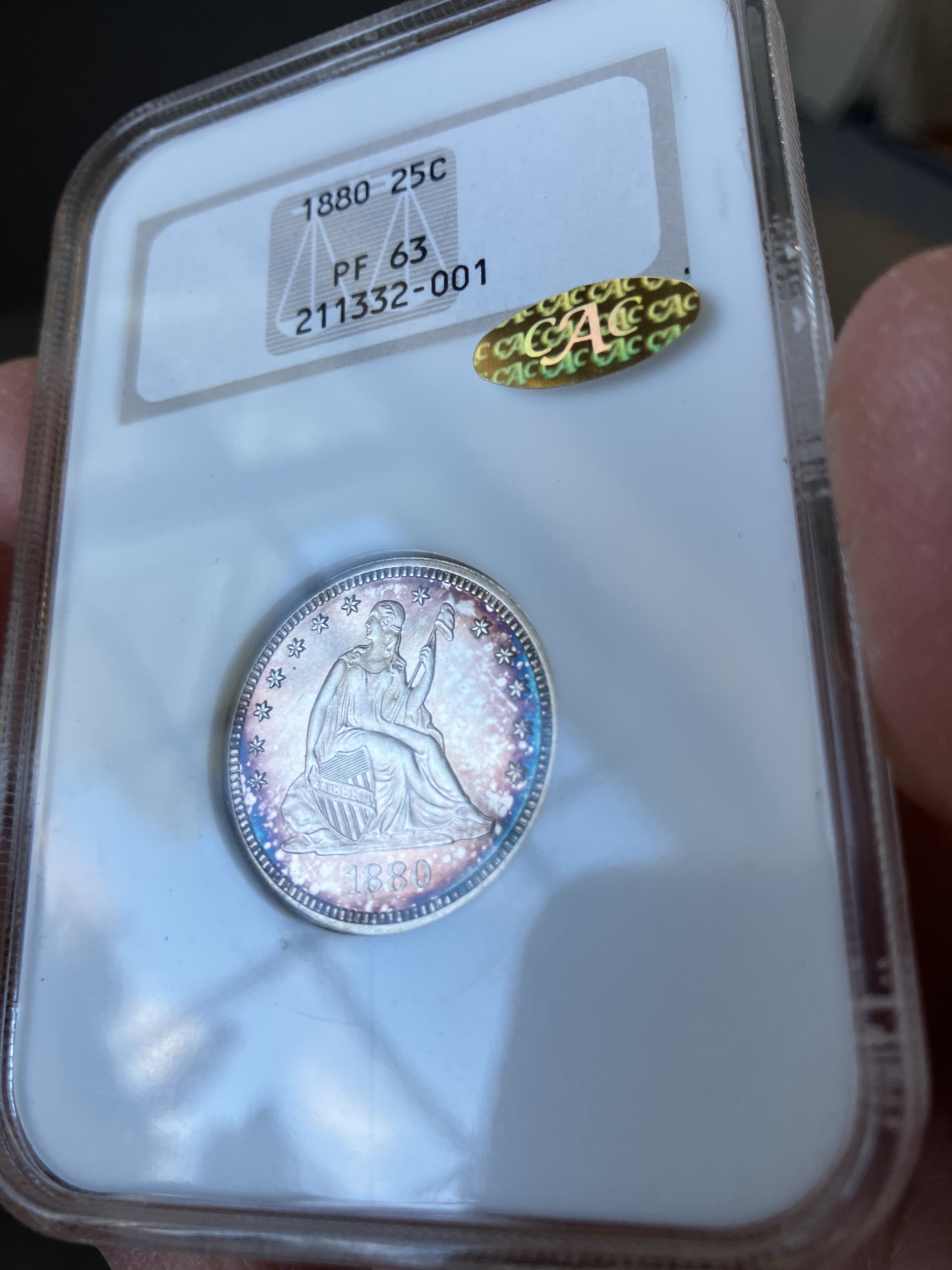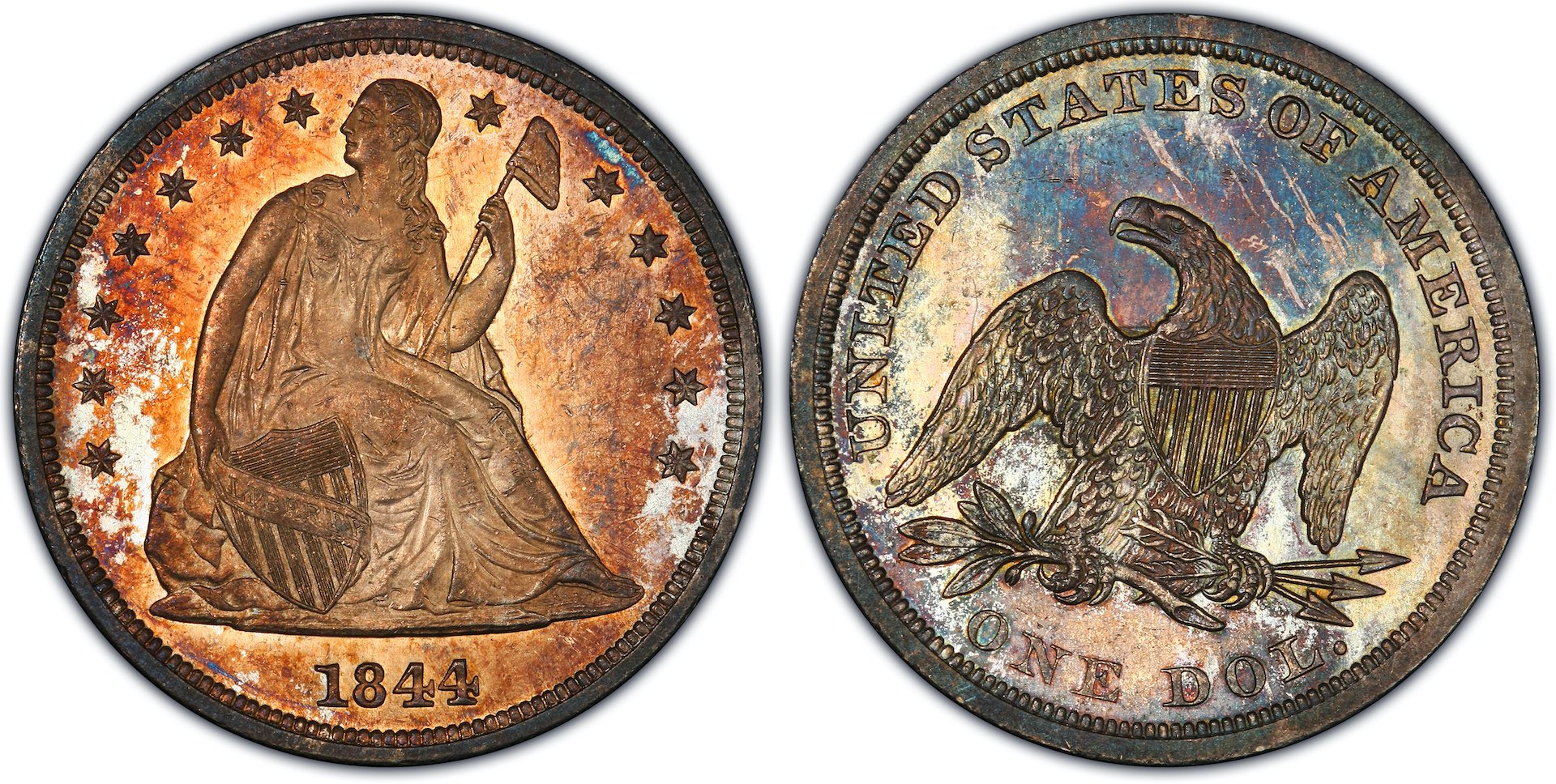 Happy Saturday everyone! A head nod to Halloween yesterday with an orange obverse of an 1844 MS63 CAC Seated Dollar.