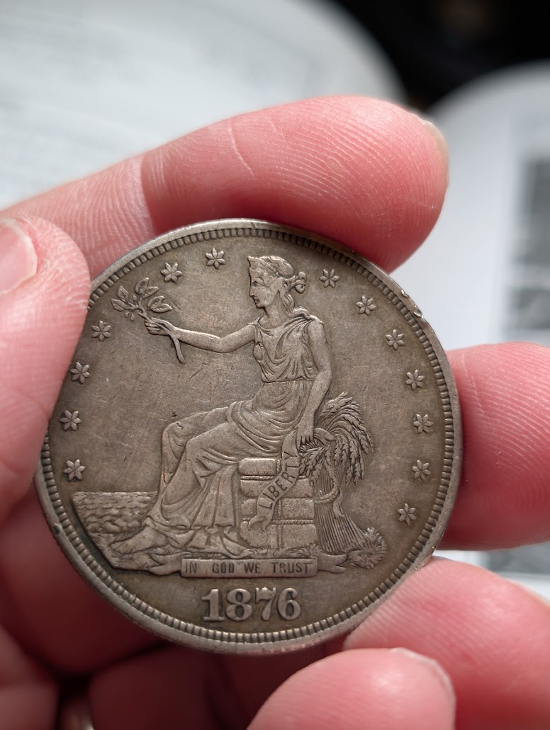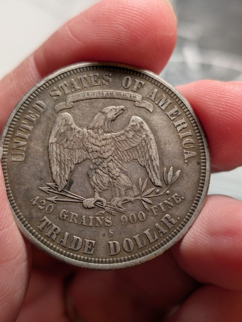 A new addition for my circulated (but not chopped) trade dollar album. At first glance, a common date. But this is the type 2/2 with Large S mm, the second scarcest variety for the date behind the famous DDO.
