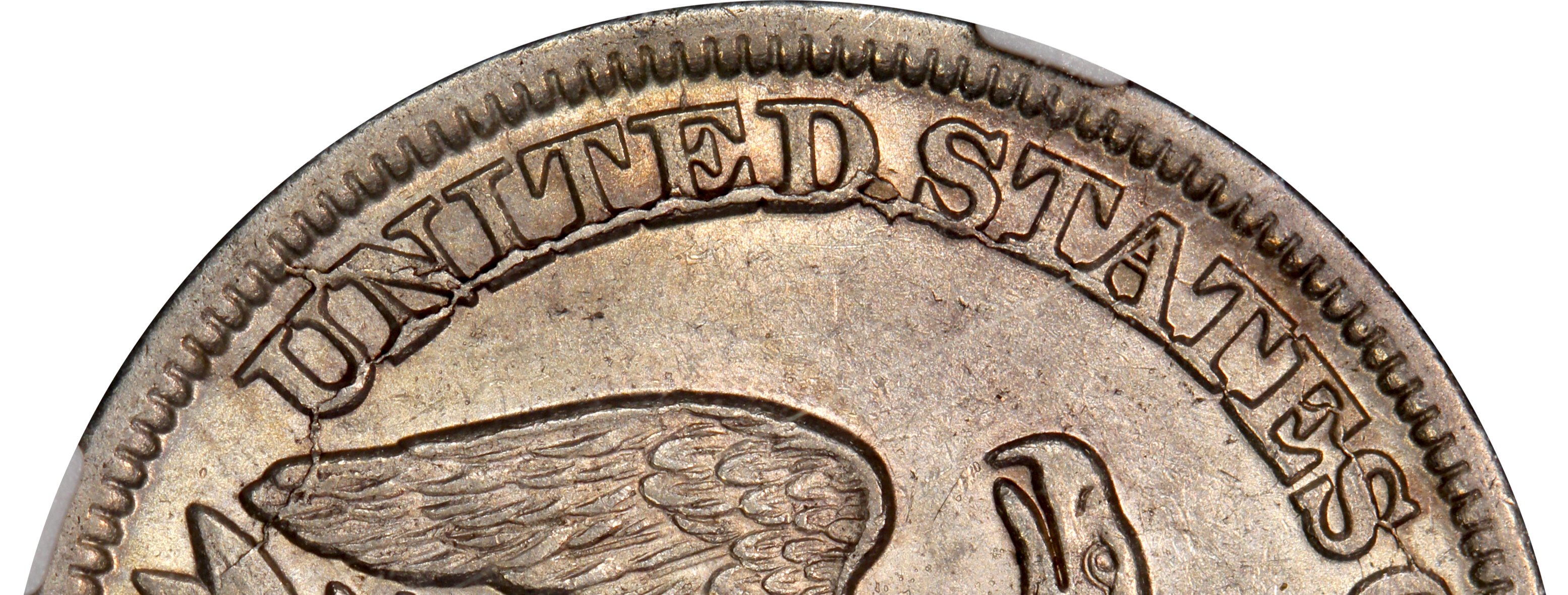 To make @Barberian proud, I cracked this coin out of its NGC AU55 holder and submitted for variety attribution at PCGS. Came back same grade and is now the "top pop" for the variety (WB-22 RP7). It has been cleaned but the crumbling die is the main attraction (and the coin is reverse mounted in the holder accordingly!):