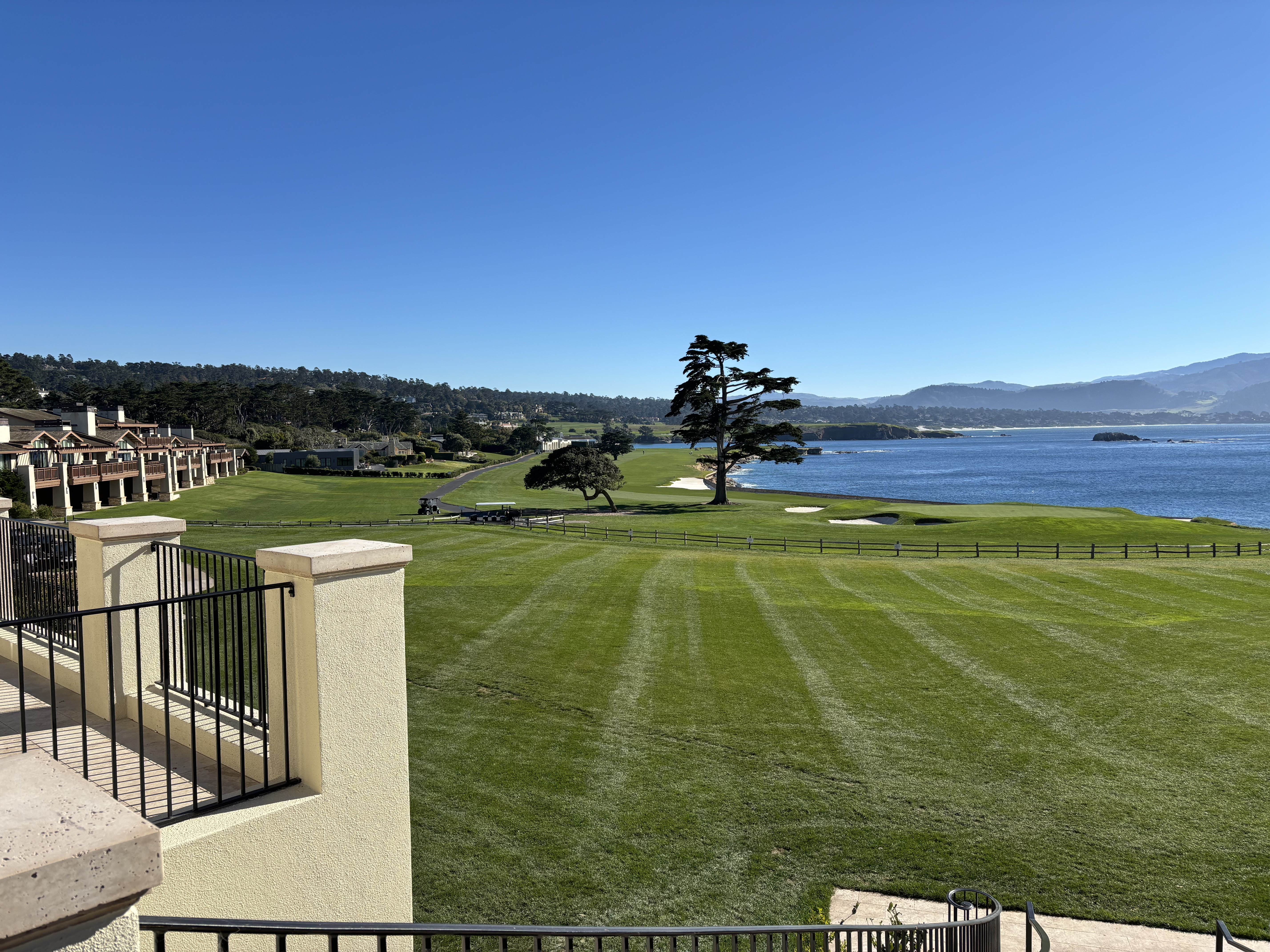New coin and a view from The Lodge at Pebble Beach while having lunch on the veranda.