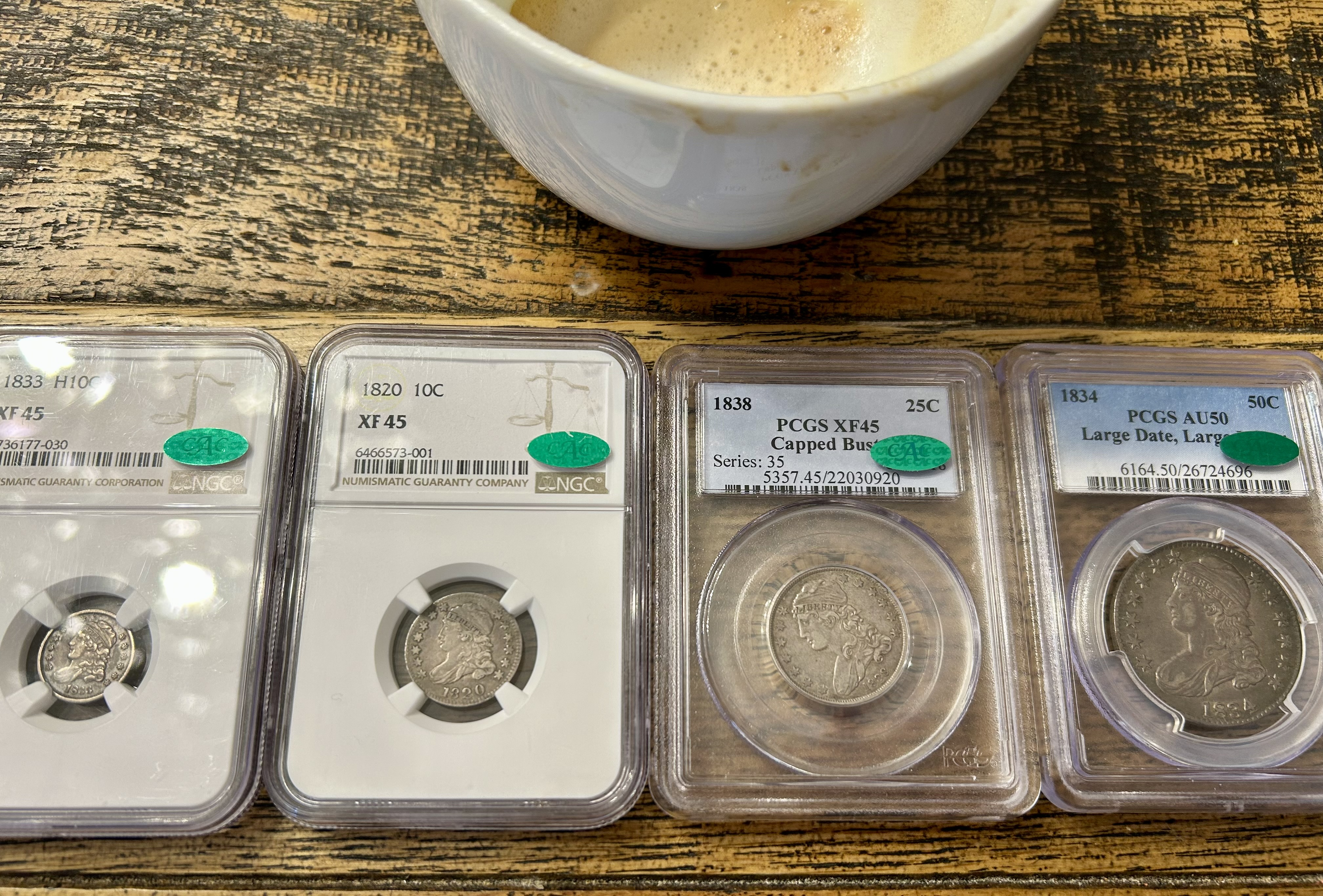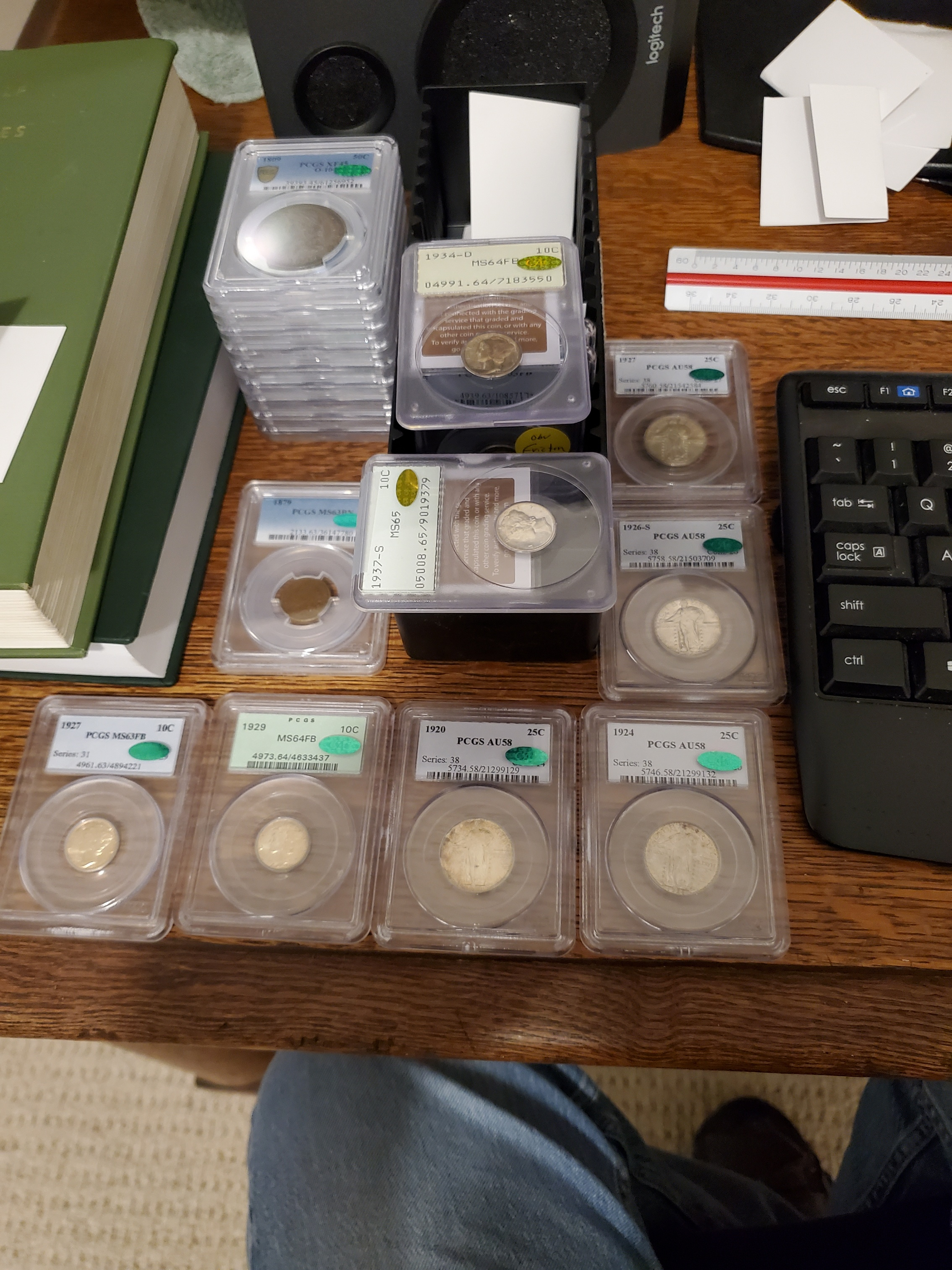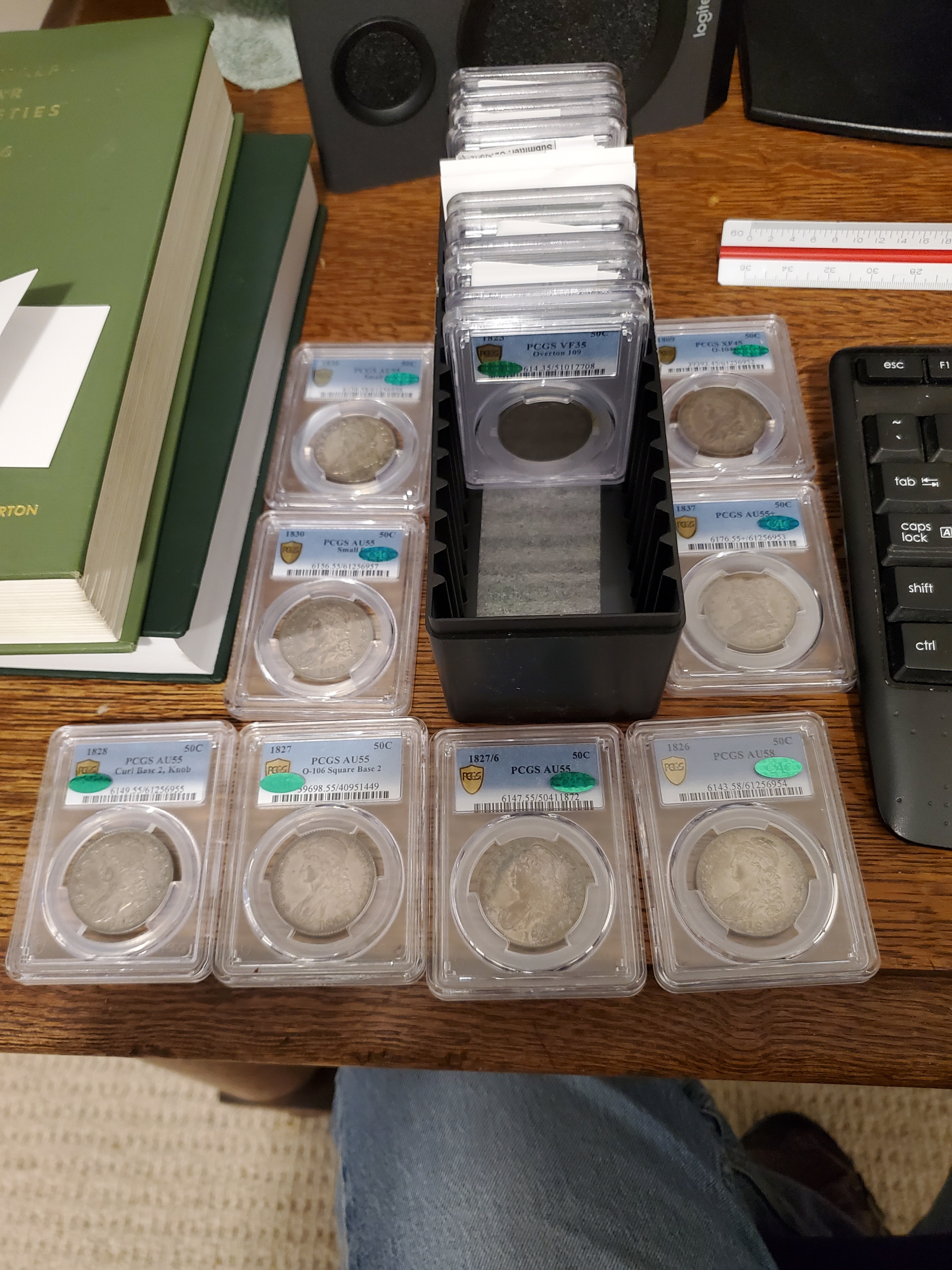 Of the 10 CBH's, I had cracked 6 out of the holders I bought them in, and had them graded at PCGS before sending them to CAC. Four of those 6 upgraded at PCGS (one noticeably), one stayed the same, and one lost a "half" a point (58 to 55+). All 6 of those stickered. Also, @Davidk7 made the 1823 O-109 50c from a raw purchase, which I bought from him last year. The other two were how I bought them, and the one that didn't pass was noticeably the least probable of the group IMO.