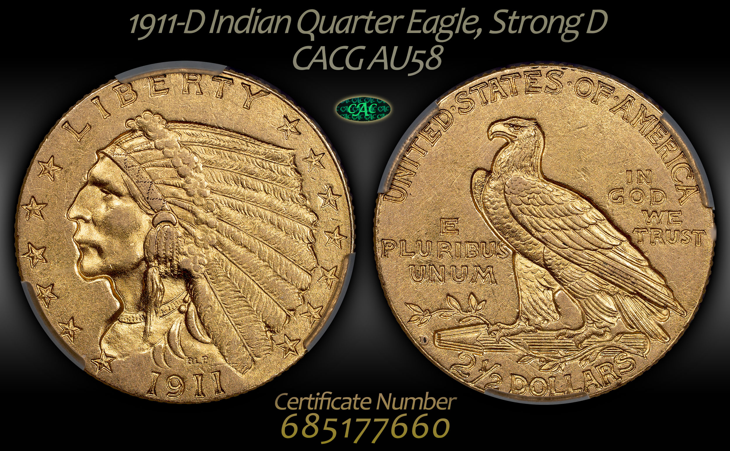 I love this date - the 1911-D (Strong D) QE Indian is the key to the series. I traded up for this one with a really nice PCGS AU55 CAC I had (& really liked). This one, though? It has the “strongest” Strong D I’ve ever seen on one of these! Its excellent eye appeal is an added bonus!