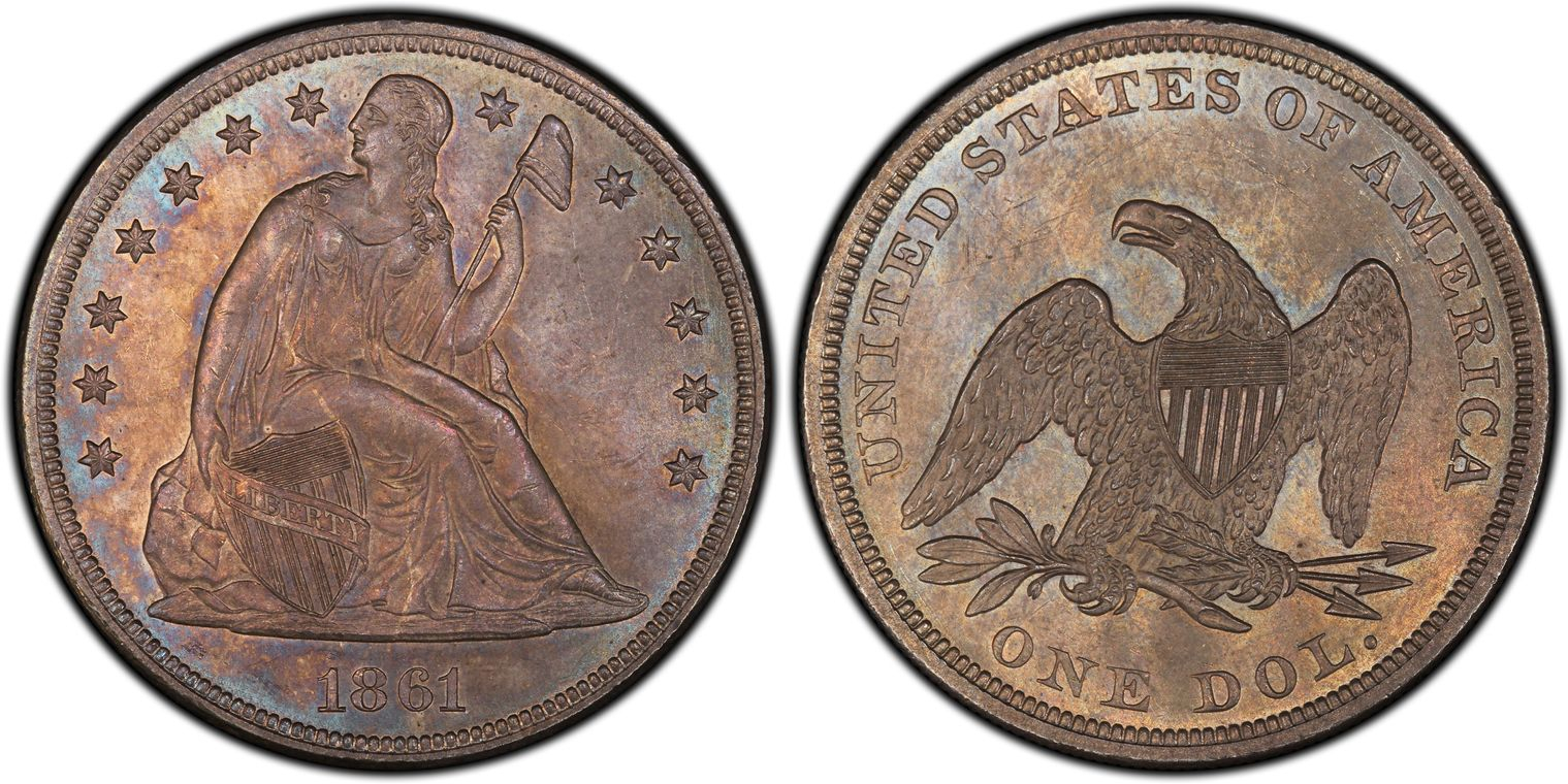 An old, original 1861 Seated Dollar.