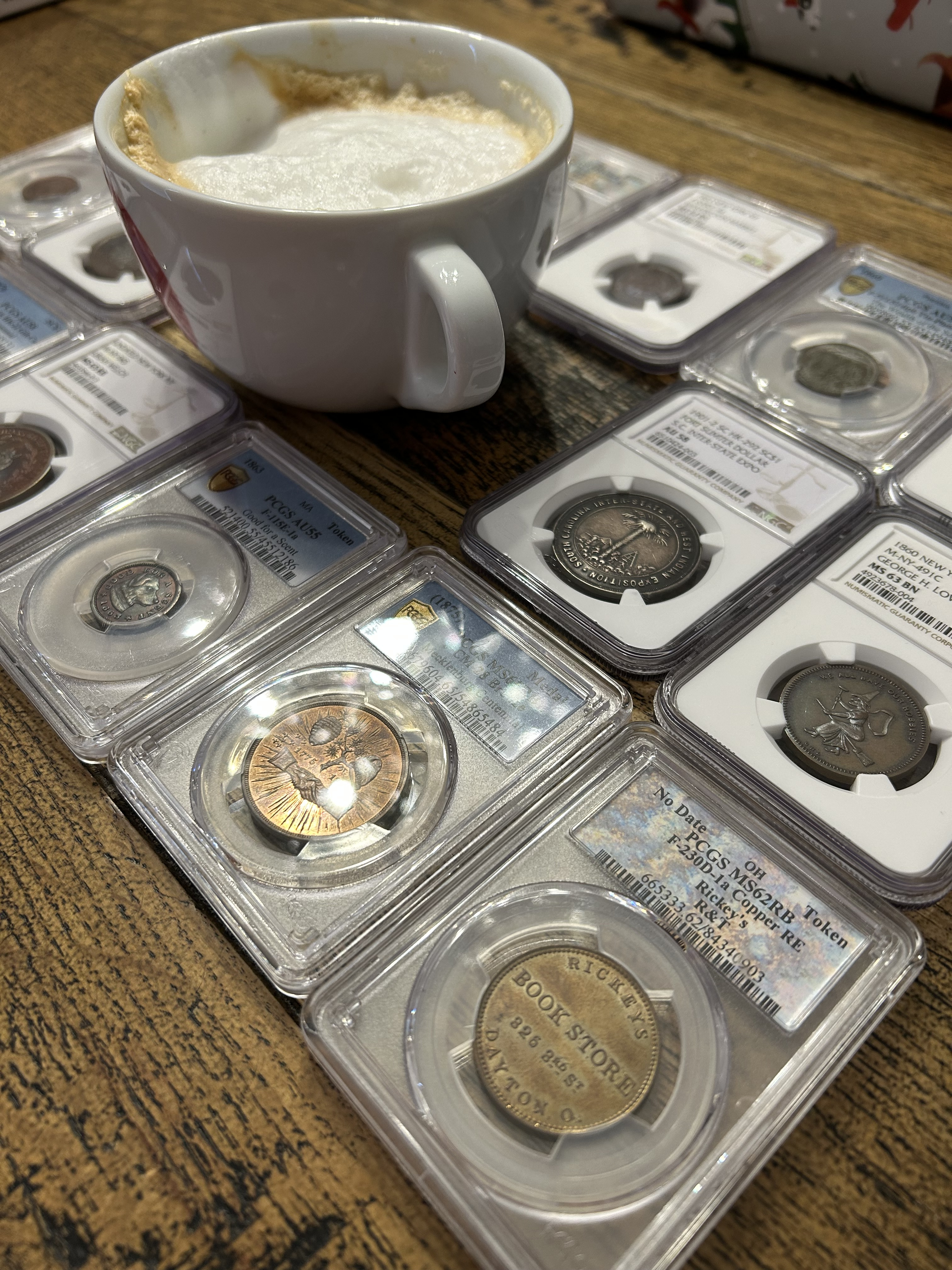 Happy Saturday everyone! Contemplating coins, coffee and Christmas this morning.