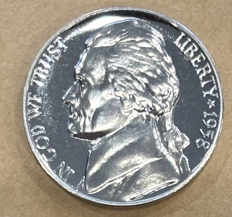 I can not post coins of the quality and appeal of those posted today by ElDorado and FlyingAl,............. but yesterday I did pick up a 1958 OGP proof set at a local show that contained this frosty gem (it looks much better in hand than in the photos):