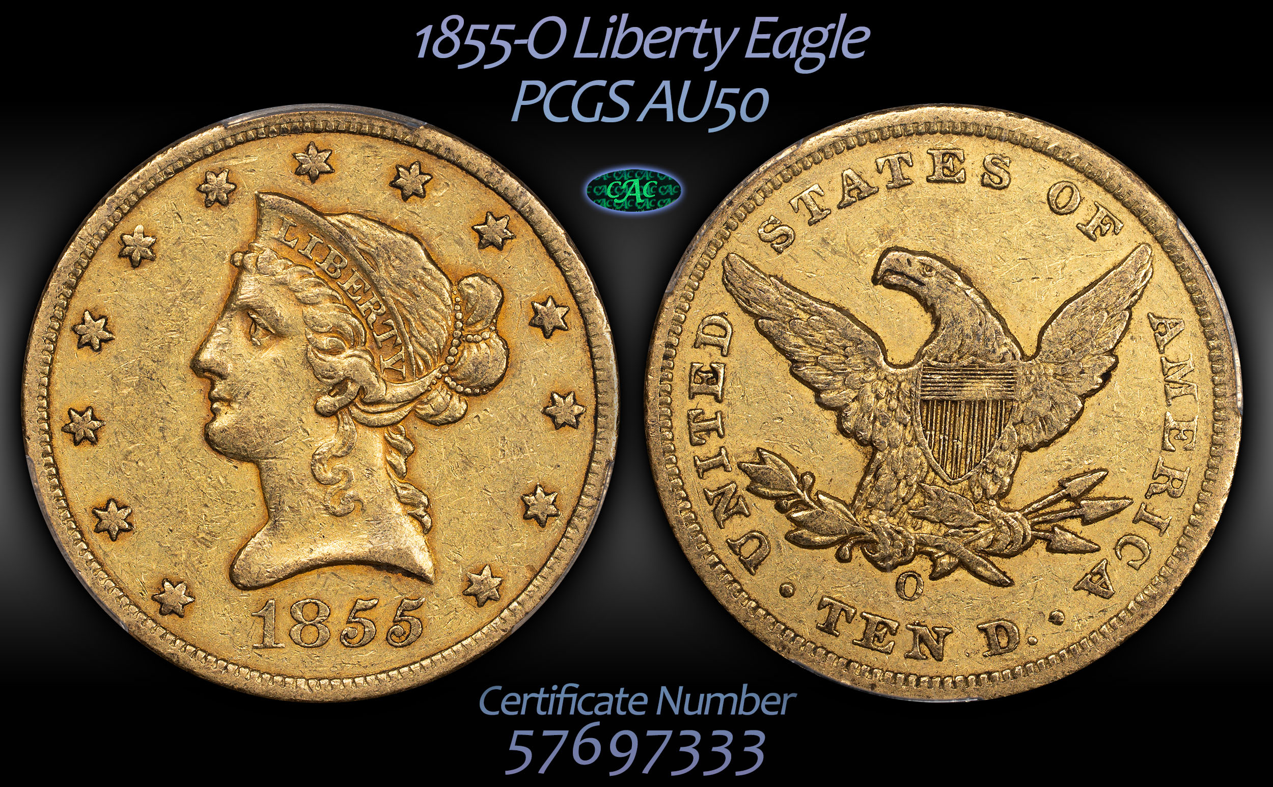 Per Doug Winter, the 1855-O Eagle is one of the toughest NO mint coins in any gold denomination. This example is a pure, crusty original I really like!