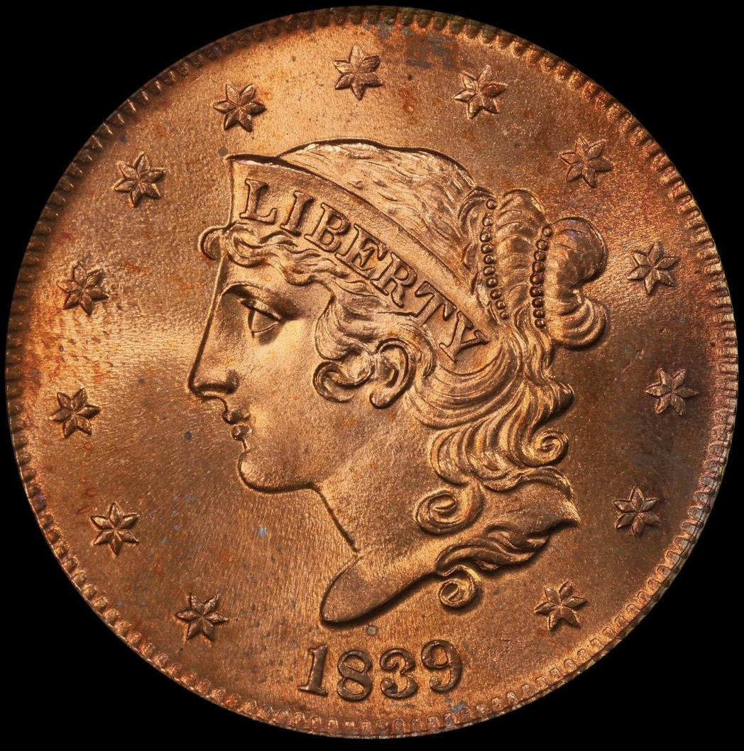 Large cent collectors revere the 1839 Booby Head variety. Appropriately, it concludes the Coronet cent series. This coin? It’s the finest known & 1 of only 2 RD’s in the PCGS pop. I bought it from a forum member; I was actually shocked when he offered it to me as I knew it was one of his fave pieces. For me, it was like a dream come true!