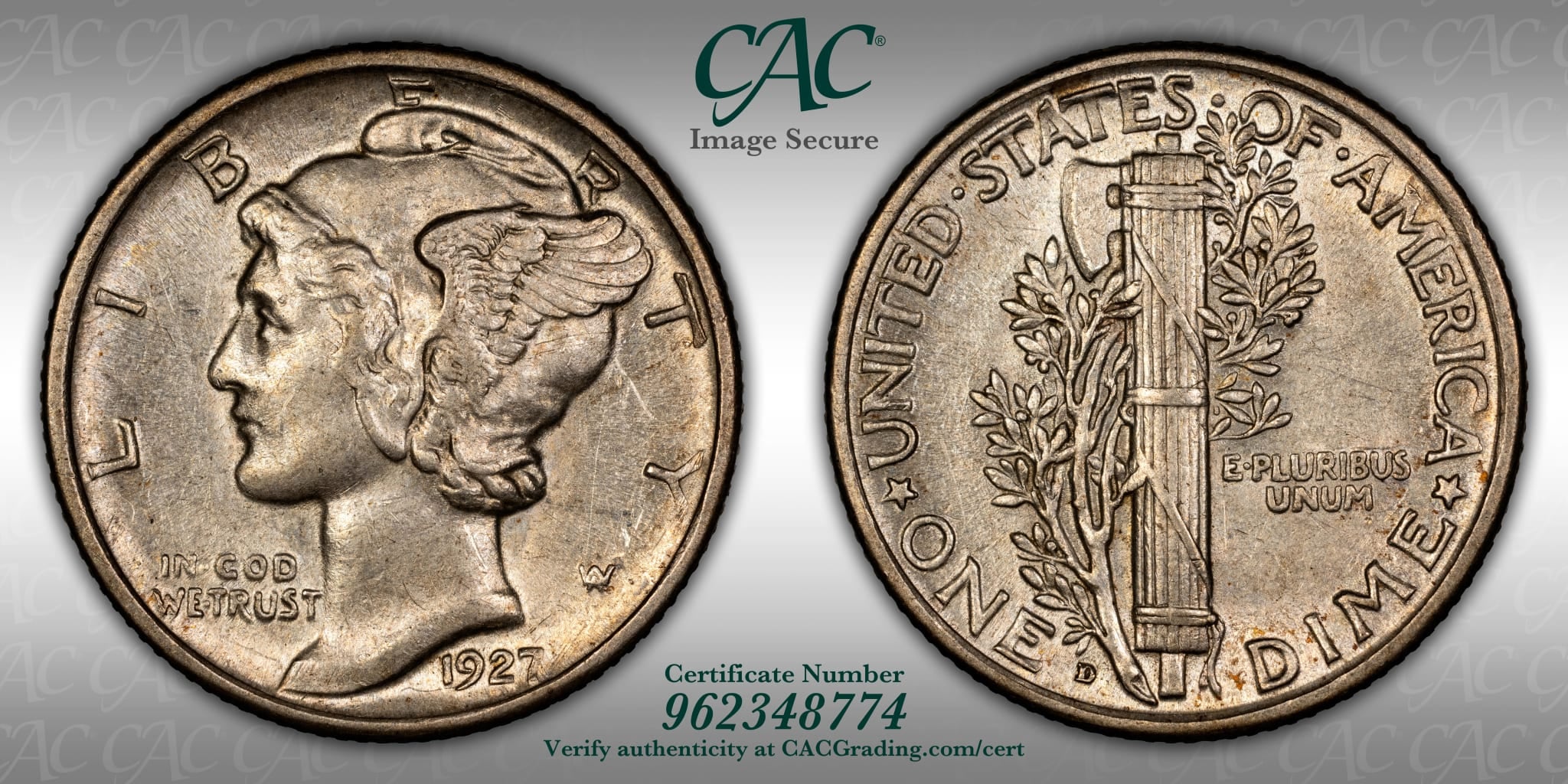 This example has been traced to the Fairmont hoard. It has nice original skin + color distinctive to those coins. The assigned AU50 grade is supported by its overall quality, strike & marks. The CAC approval backs this contention.