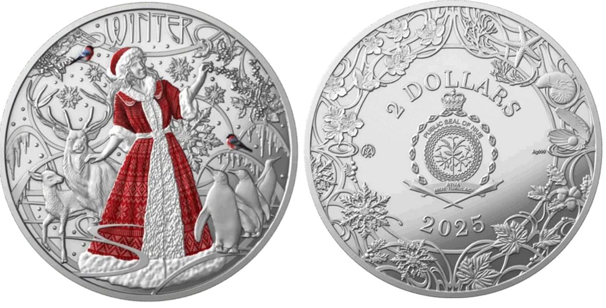 2025 Niue Four Seasons Winter, 2 Dollars, 40mm, 1oz Au, 1000 mintage