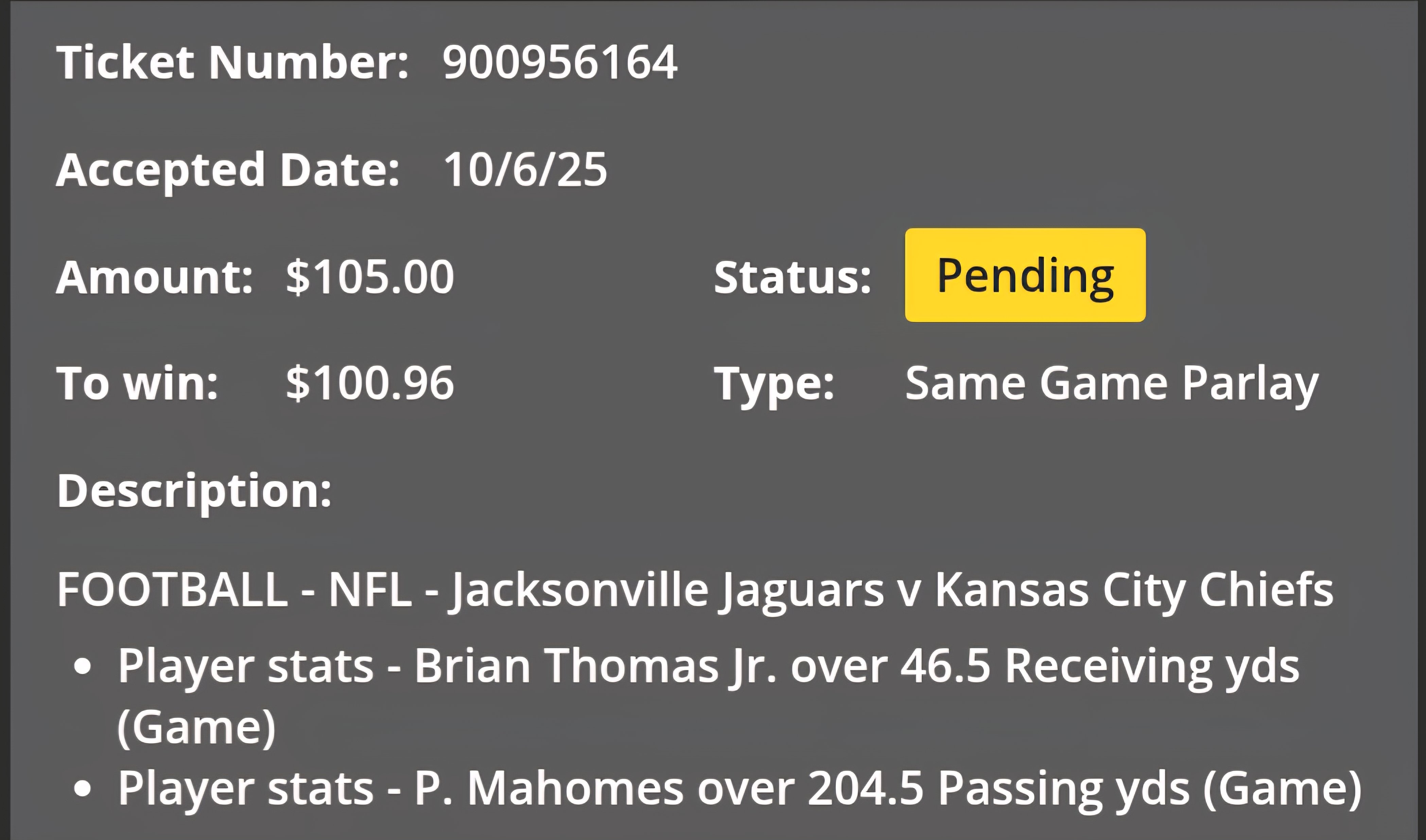 Again I might wait till the first quarter to put something in, Mahomes passing yards is definitely something I'm going to keep an eye on, Lawrence not so much since KC's D is pretty legit.