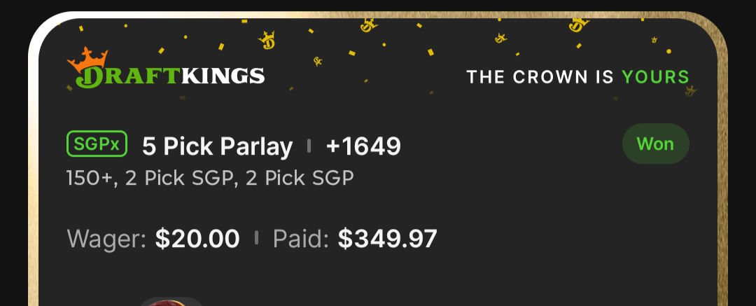 DK gets cheap with the cash outs and this time it cost them, I had a $350 winner hanging in the balance with 3 out of 5 legs covered and they only offered $110 which didn't sit well with me so I let it fly, had they done the honorable thing and offered at least half I would have cashed it so F 'em