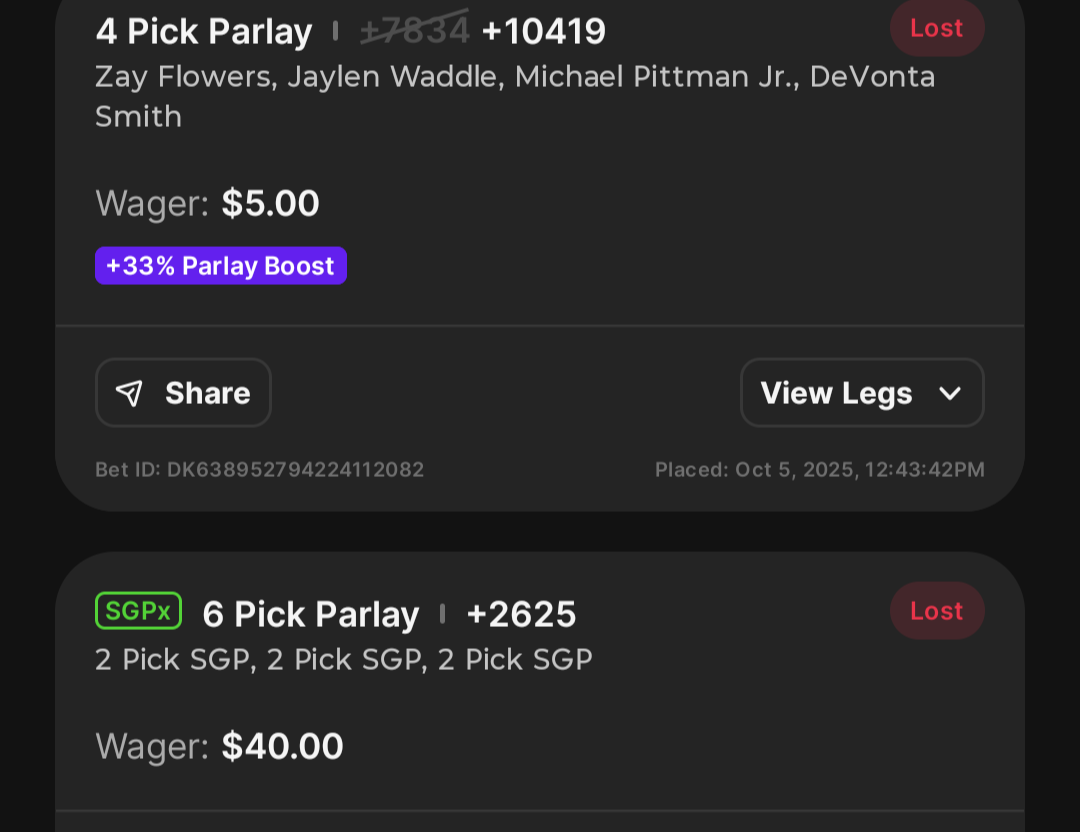 I agree with this but I get hung up. on the fact that I've missed out on thousands of winnings by missing just 1 leg of a parlay,,