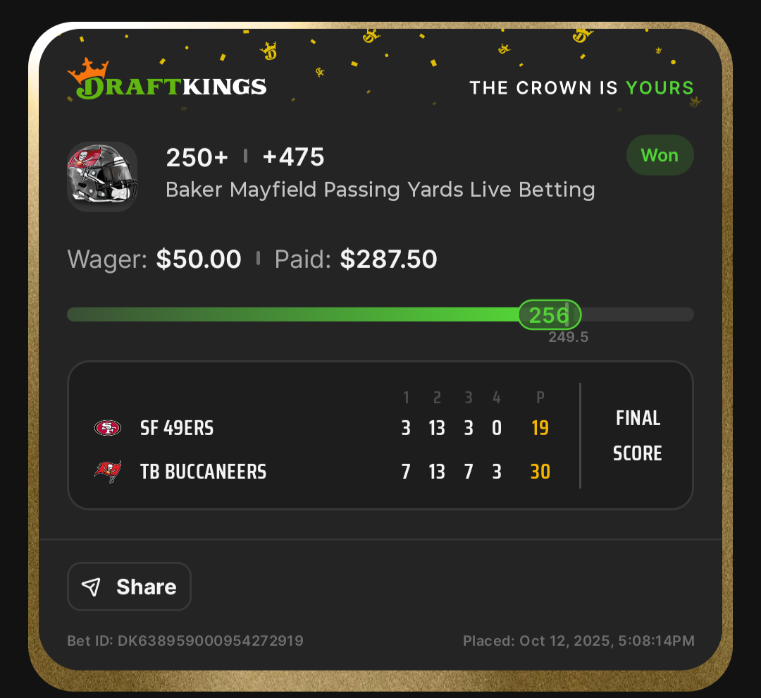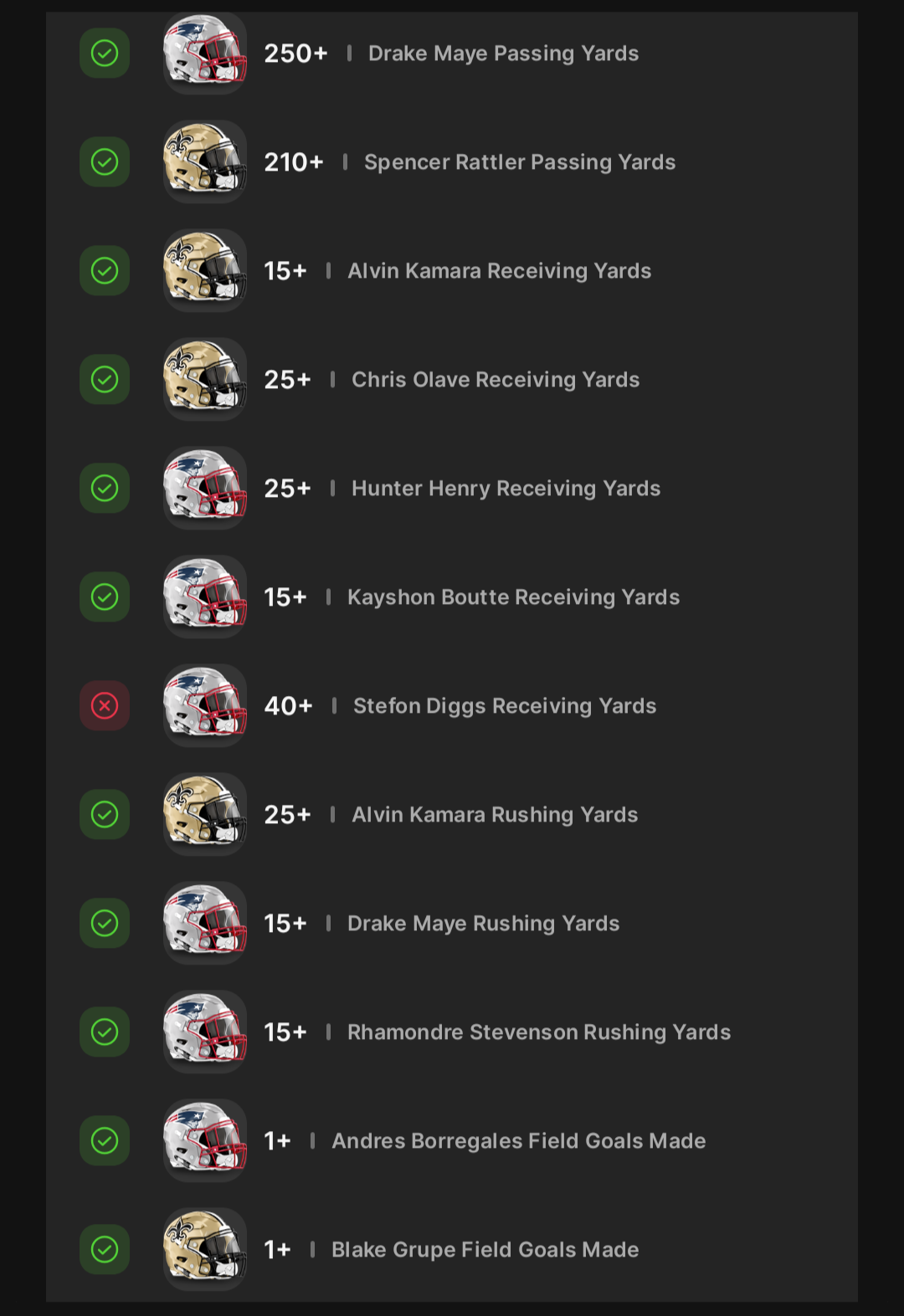 Got back some money, had Stefon Diggs had 15 more receiving yards I would have hit for $600, so down about $240 for the entire weekend