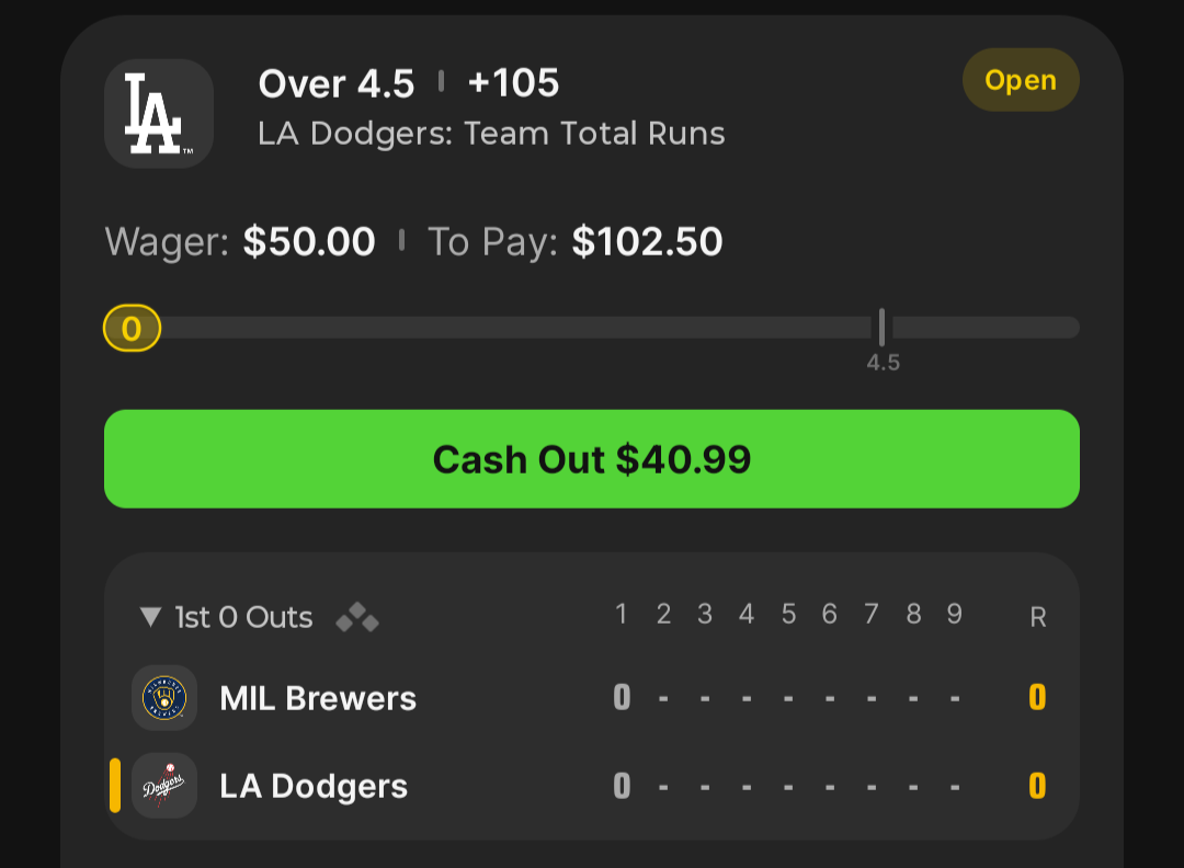 Anything can happen in MLB, but I just can't see the Dodgers not wrapping it up tonight. Dodgers nice and relaxed, and eager to end this series, might be spraying the baseball all over the place. Not sure or not if the Dodgers can get 8 runs, so also need the Brewers to fight back from getting swept and score some runs.